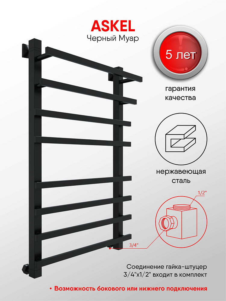Отзывы о Полотенцесушитель водяной Indigo Askel LASWPF80-50BR 85x55 см, черный муар, лесенка