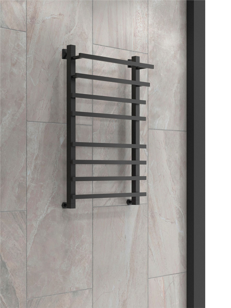 Полотенцесушитель водяной Indigo Askel LASWPF80-50BR 85x55 см, черный муар, лесенка