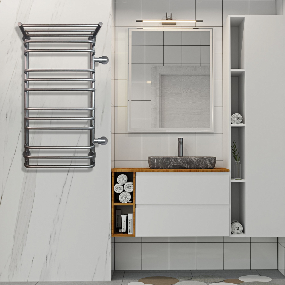 Отзывы о Полотенцесушитель водяной Indigo Brace LBCW100-50PGFM-б/п-60 100x55 см, graphite metallic, лесенка, с полкой