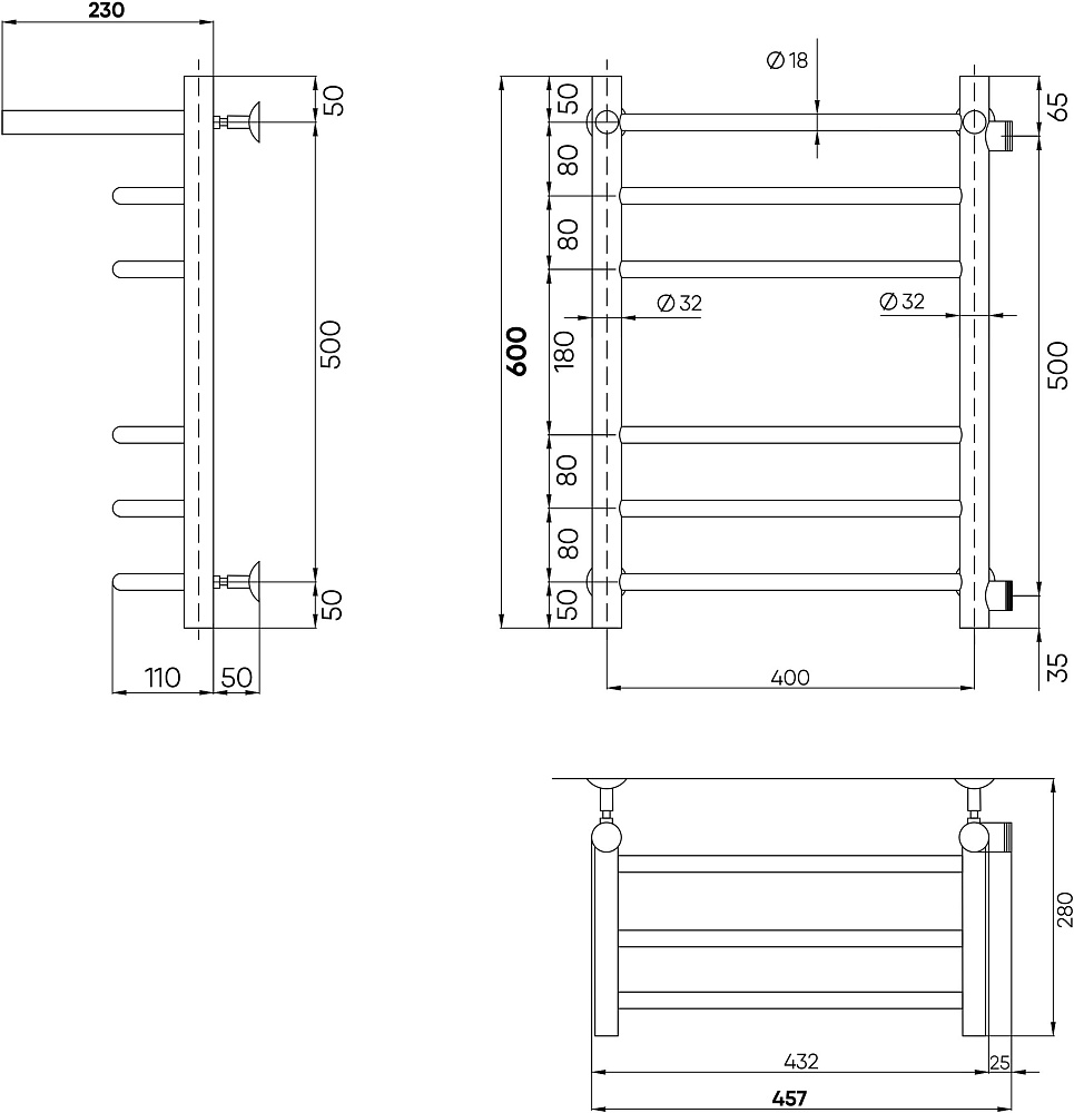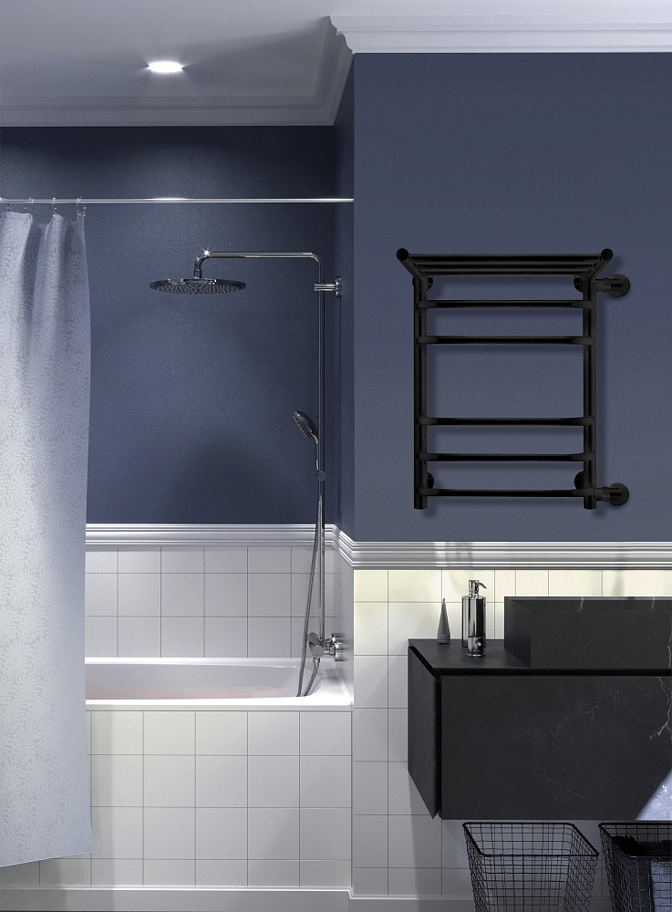 Отзывы о Полотенцесушитель водяной Indigo Brace LBCW60-40PBRR-б/п-50 60x45 см, черный муар, лесенка, с полкой