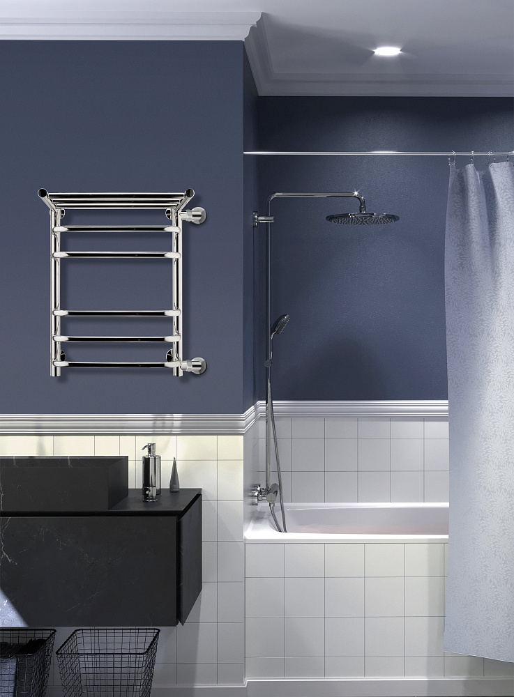 Полотенцесушитель водяной Indigo Brace LBCW60-40PR-б/п-50 60x45 см, серебристый, лесенка, с полкой