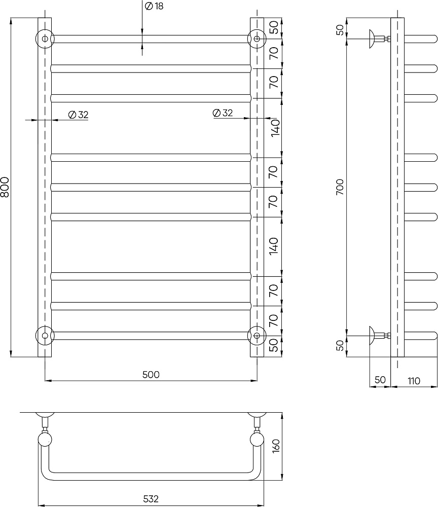 Отзывы о Полотенцесушитель водяной Indigo Brace LBCW80-50BR 80x55 см, черный муар, лесенка