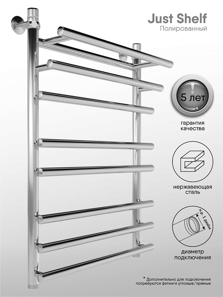 Отзывы о Полотенцесушитель водяной Indigo Just Shelf LJSHW80-50 80x55 см, серебристый, лесенка, с полкой