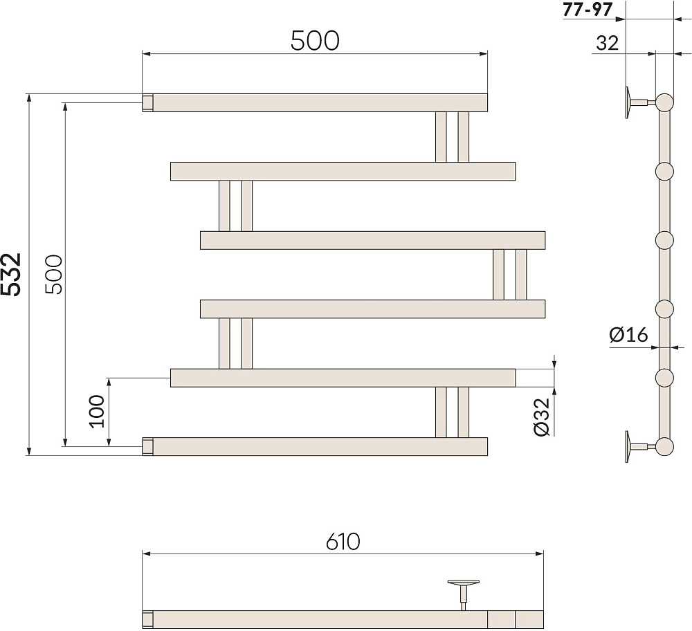 Отзывы о Полотенцесушитель водяной Indigo Zip FZW50-50GNSK3 55x60 см, gun metal, E-образный