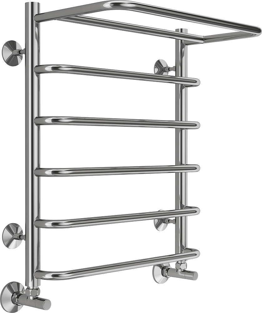 Водяной полотенцесушитель Terminus Полка П6 500x600 с полкой — это не только функциональный, но и стильный аксессуар для вашей ванной комнаты. Полотенцесушитель изготовлен с применением надежной технологии защиты от коррозии и ржавчины, основанной на процессе пассивации металла. Технология пассивации повышает устойчивость к коррозии до 99,8%, обеспечивая защиту от блуждающих токов и агрессивной воды, тем самым значительно продлевая срок службы полотенцесушителя. Защитный слой имеет прочную структуру, который не поддаётся отслаиванию при высоких температурах и низком качестве воды. Плазменная полировка придаёт полотенцесушителю красивый блеск и дополнительную износостойкость. Он будет выглядеть как новый даже спустя много лет использования. Диаметр вертикальных стоек составляет 32 мм, а горизонтальных перекладин — 18 мм. Это обеспечивает прочность и устойчивость конструкции, а также позволяет эффективно распределять тепло. Приобретая водяной полотенцесушитель Terminus Полка П6 500x600 с полкой, вы получаете не только функциональный и надёжный аксессуар, но и стильное дополнение к интерьеру вашей ванной комнаты. Он станет отличным выбором для тех, кто ценит качество, безопасность и долговечность.