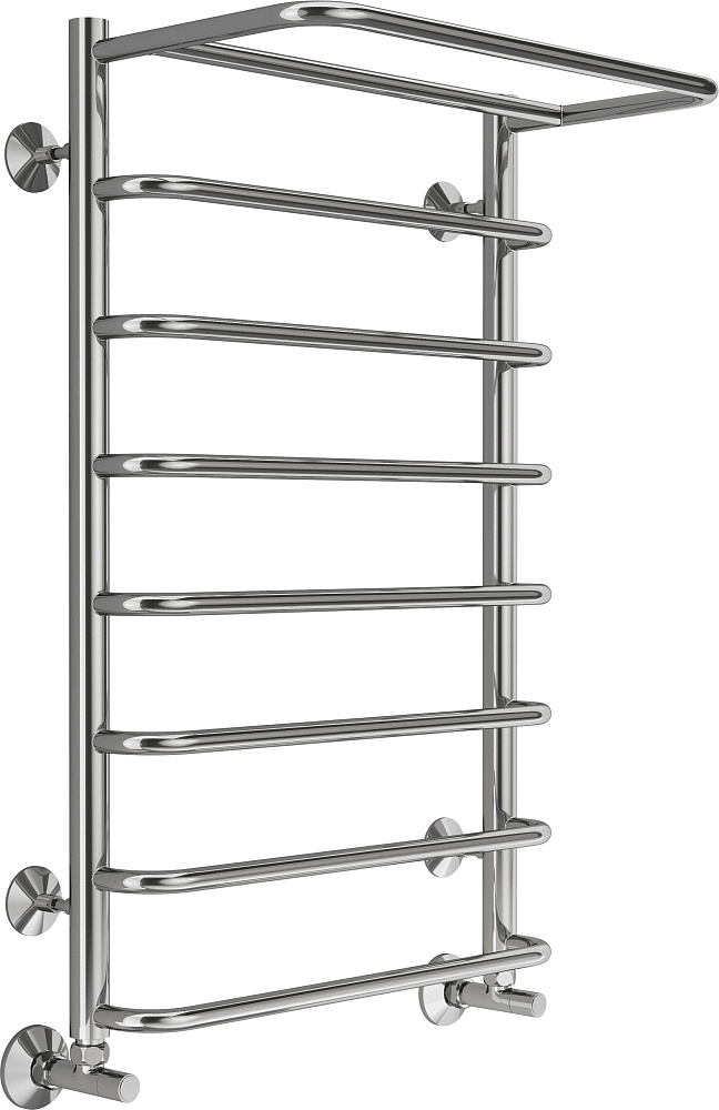 Водяной полотенцесушитель Terminus Полка П8 500x800 с полкой — это не только функциональный, но и стильный аксессуар для вашей ванной комнаты. Полотенцесушитель изготовлен с применением надежной технологии защиты от коррозии и ржавчины, основанной на процессе пассивации металла. Технология пассивации повышает устойчивость к коррозии до 99,8%, обеспечивая защиту от блуждающих токов и агрессивной воды, тем самым значительно продлевая срок службы полотенцесушителя. Защитный слой имеет прочную структуру, который не поддаётся отслаиванию при высоких температурах и низком качестве воды. Плазменная полировка придаёт полотенцесушителю красивый блеск и дополнительную износостойкость. Благодаря этому покрытию, поверхность устройства становится более устойчивой к царапинам и сохраняет свой привлекательный внешний вид на протяжении многих лет. Диаметр вертикальных стоек составляет 32 мм, а горизонтальных перекладин — 18 мм. Это обеспечивает прочность и надёжность конструкции, позволяя полотенцесушителю выдерживать значительные нагрузки и сохранять свою форму даже при интенсивном использовании. Водяной полотенцесушитель Terminus Полка П8 500x800 с полкой — это идеальное сочетание функциональности, стиля и качества. Он станет не только незаменимым помощником в вашей ванной комнате, но и стильным акцентом, который подчеркнёт индивидуальность вашего интерьера.