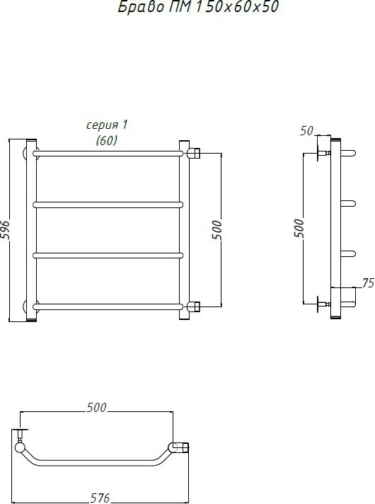 Полотенцесушитель водяной Тругор ЛЦ Браво ПМ 1 60x60 см, глянцевый хром, лесенка