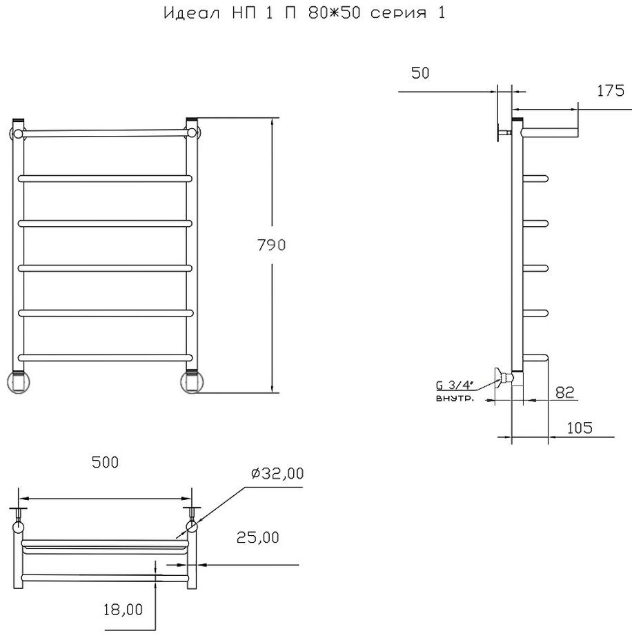 Полотенцесушитель водяной Тругор ЛЦ Идеал НП 1 П 80x55 см, хром, лесенка, с полкой