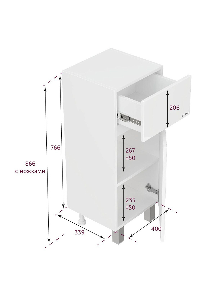 Полупенал Onika Милтон 40 напольный, белый, правый