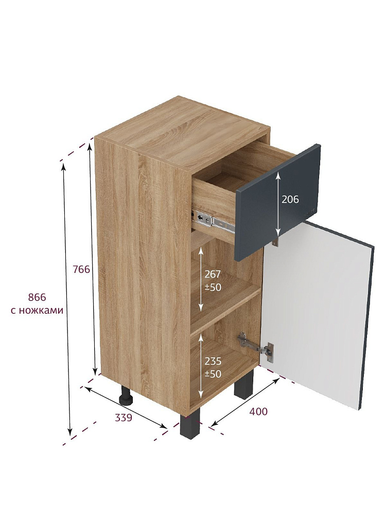 Полупенал Onika Милтон 40 напольный, серый/дуб сонома, правый