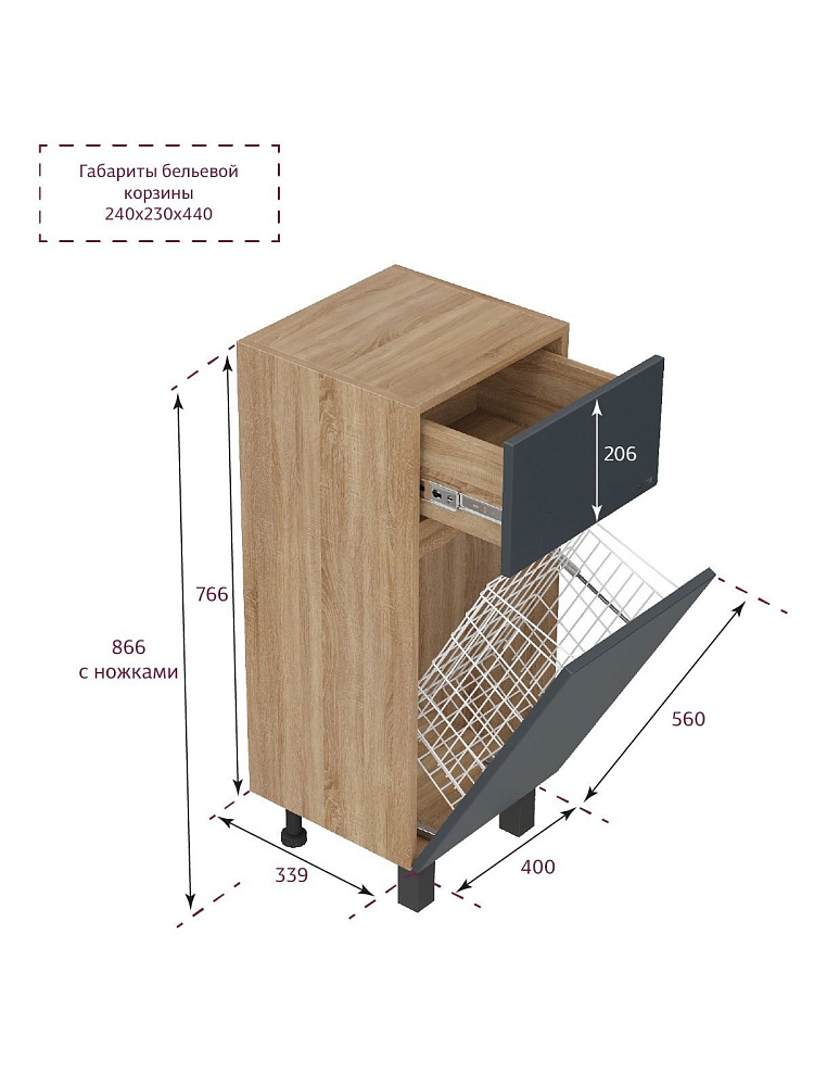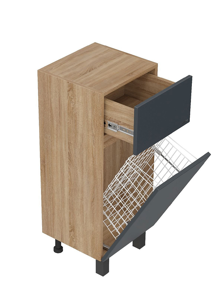 Полупенал Onika Милтон 40 напольный, серый/дуб сонома, с бельевой корзиной