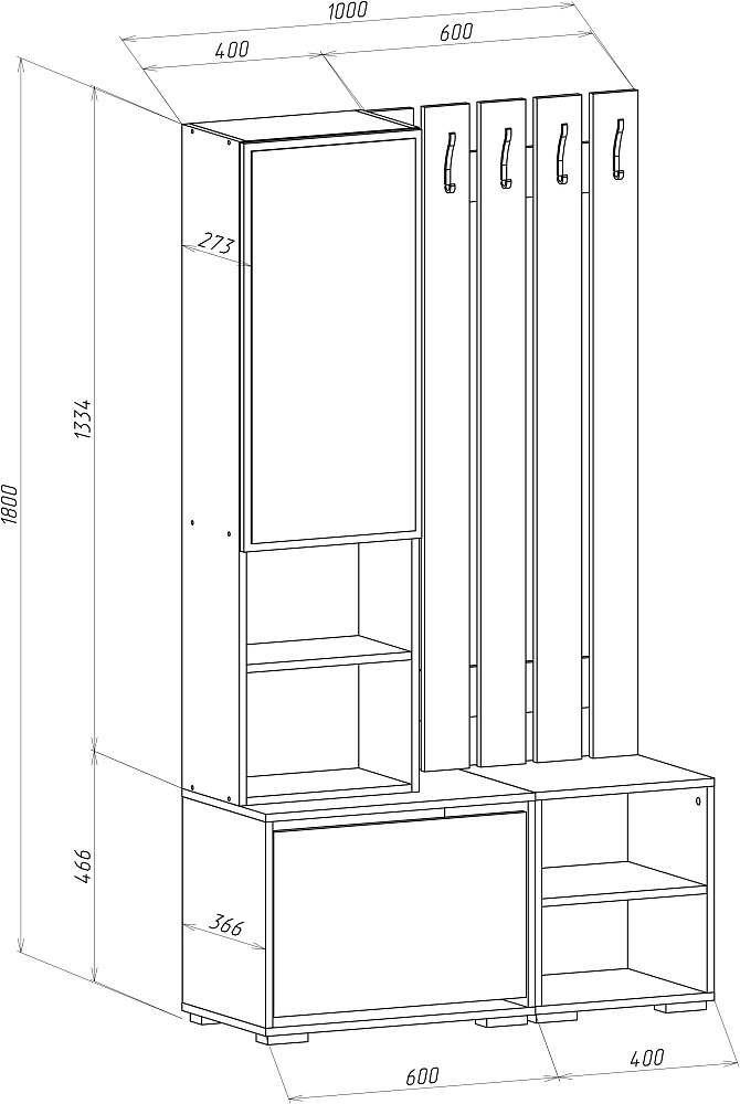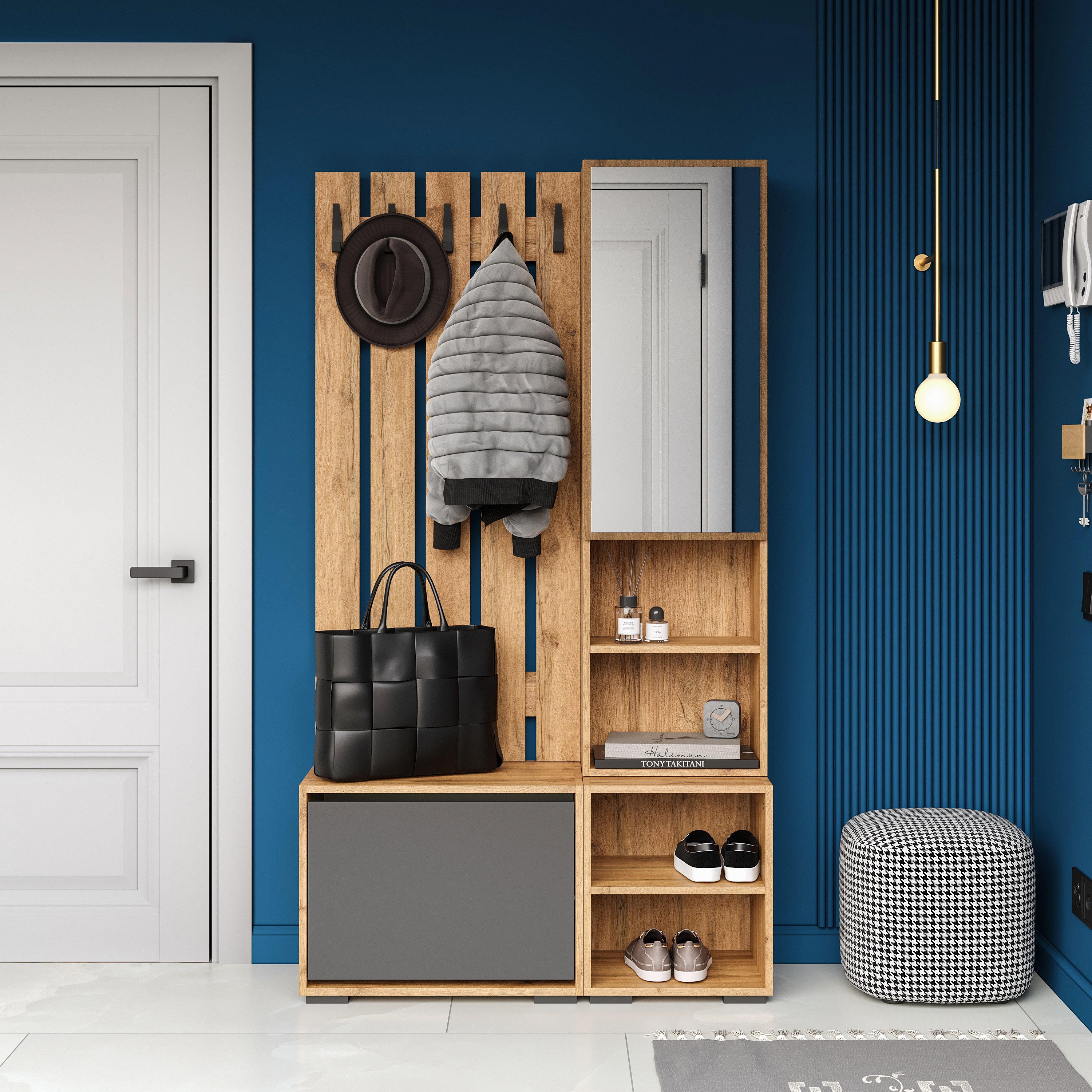 Прихожая DIWO Кострома 100 с обувницей и зеркальным шкафом, дуб вотан, антрацит, крючок черный