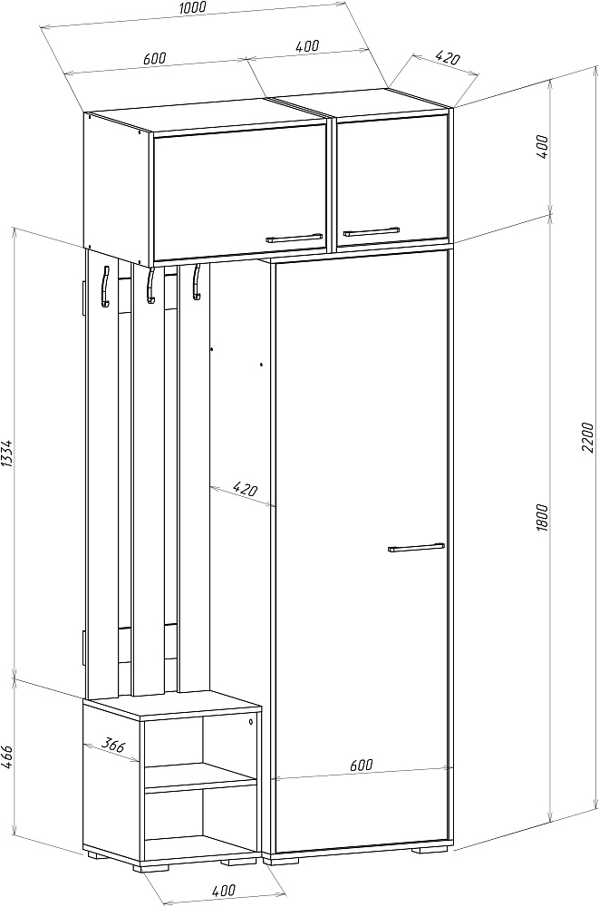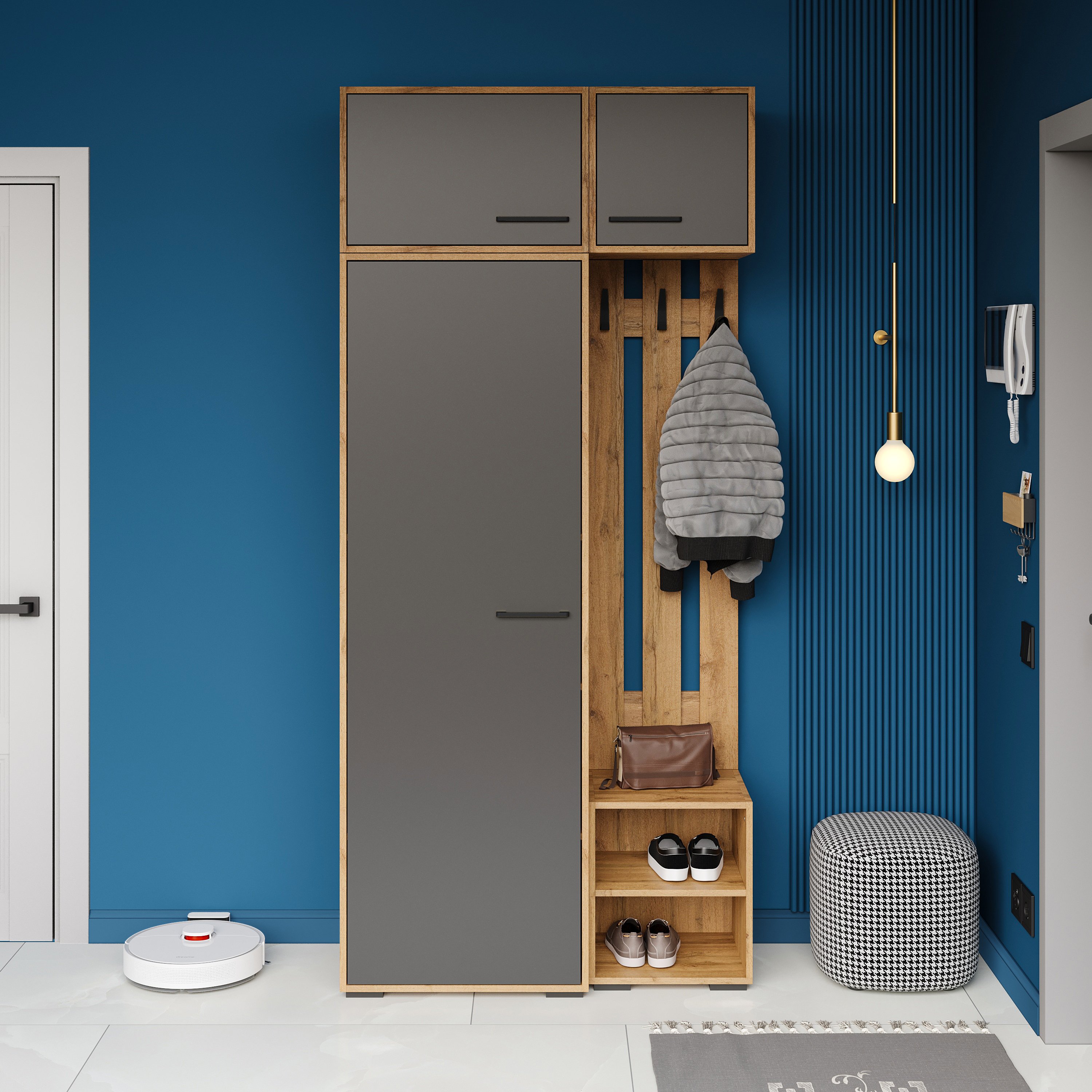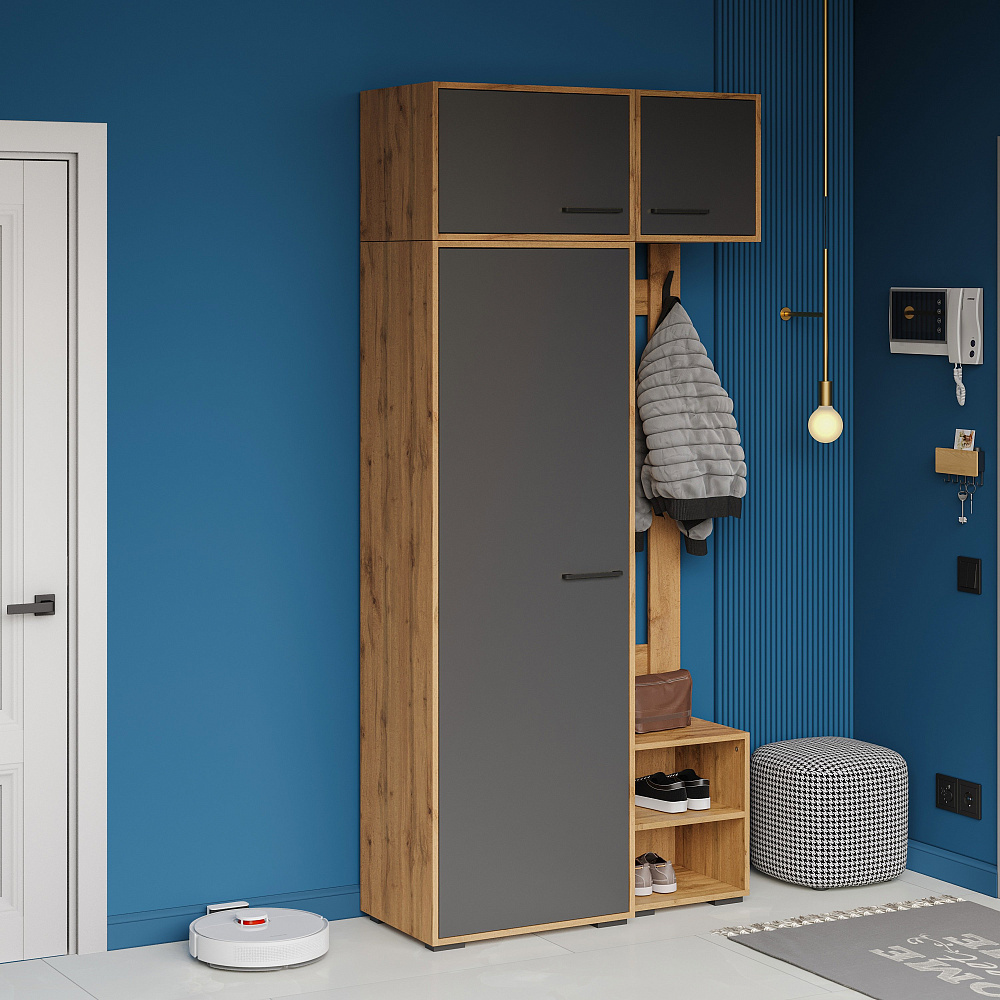 Прихожая DIWO Кострома 100 со шкафом, дуб вотан, антрацит, ручка черная
