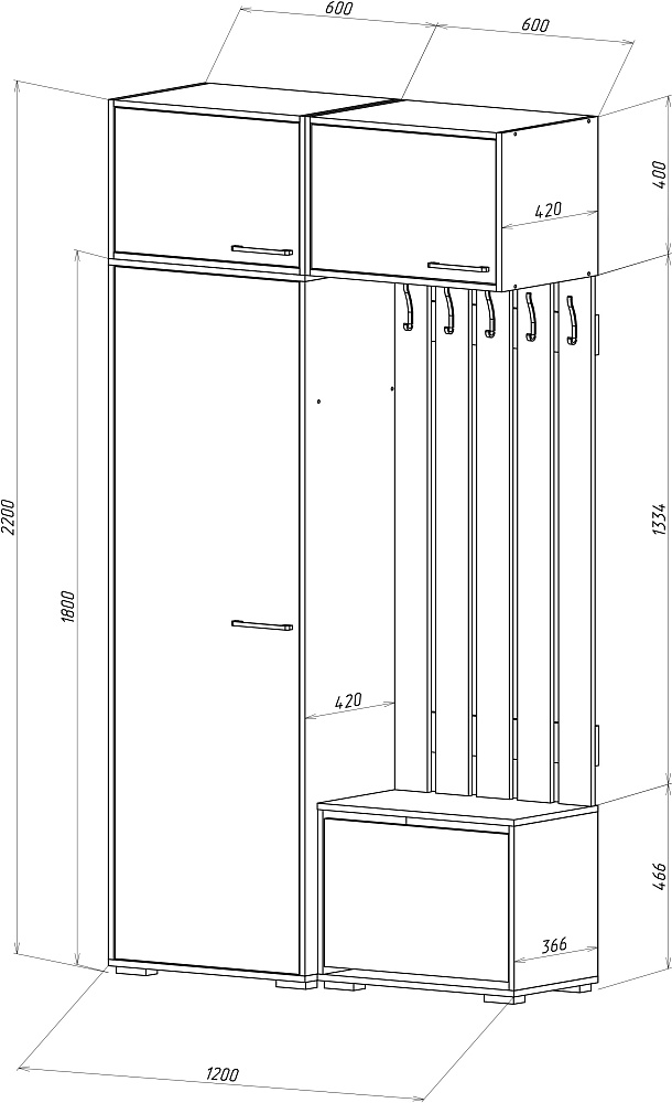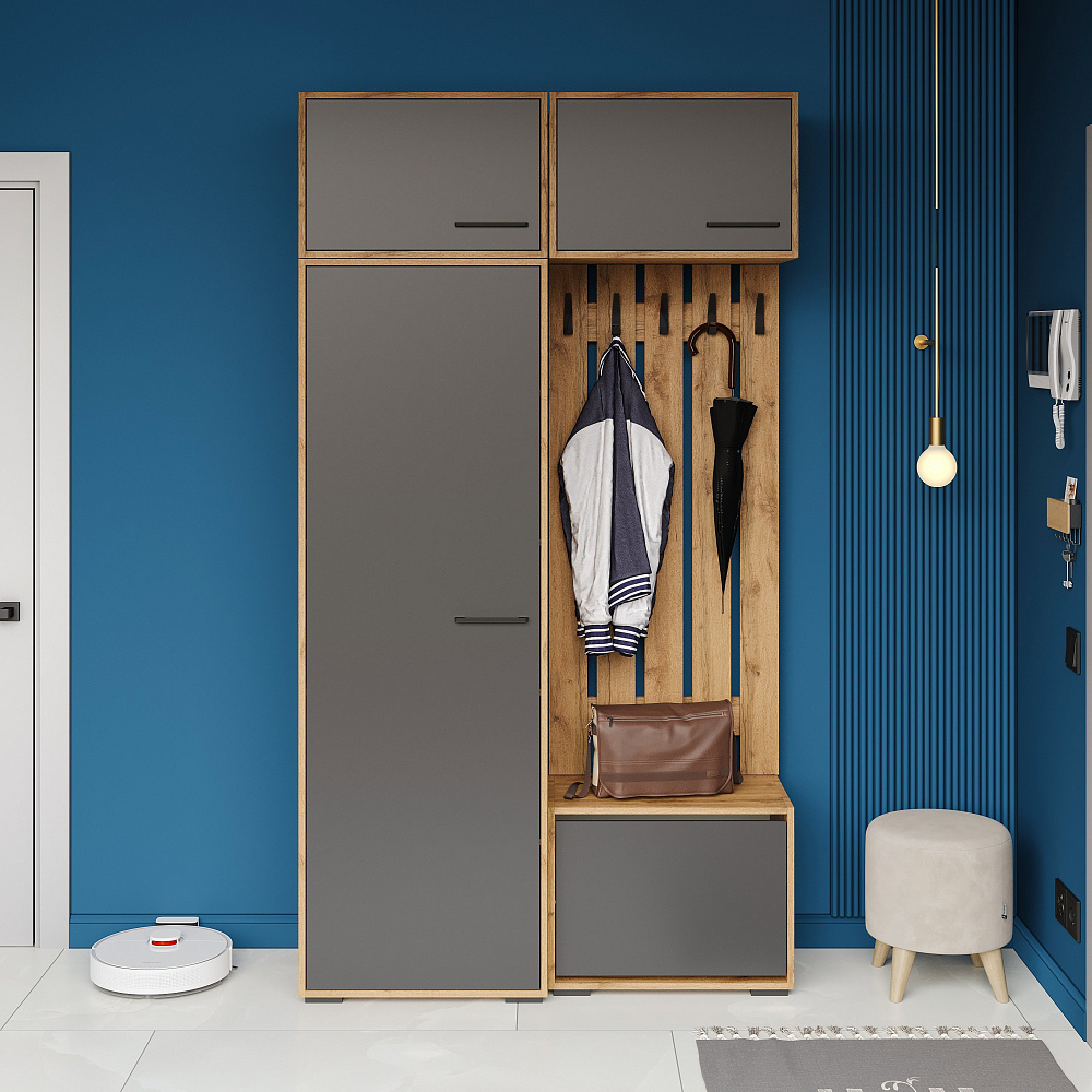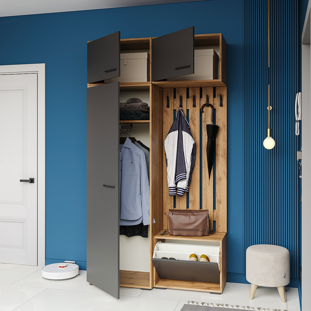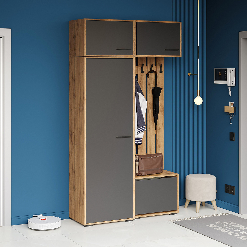 Прихожая DIWO Кострома 120 со шкафом и обувницей, дуб вотан, антрацит, ручка черная