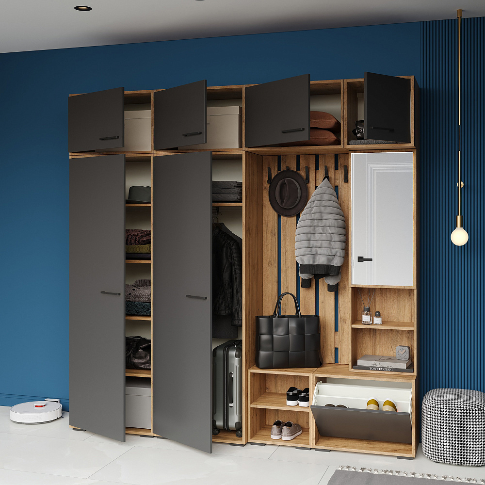 Прихожая DIWO Кострома 220 дуб вотан, антрацит, ручка черная