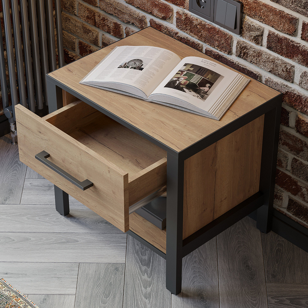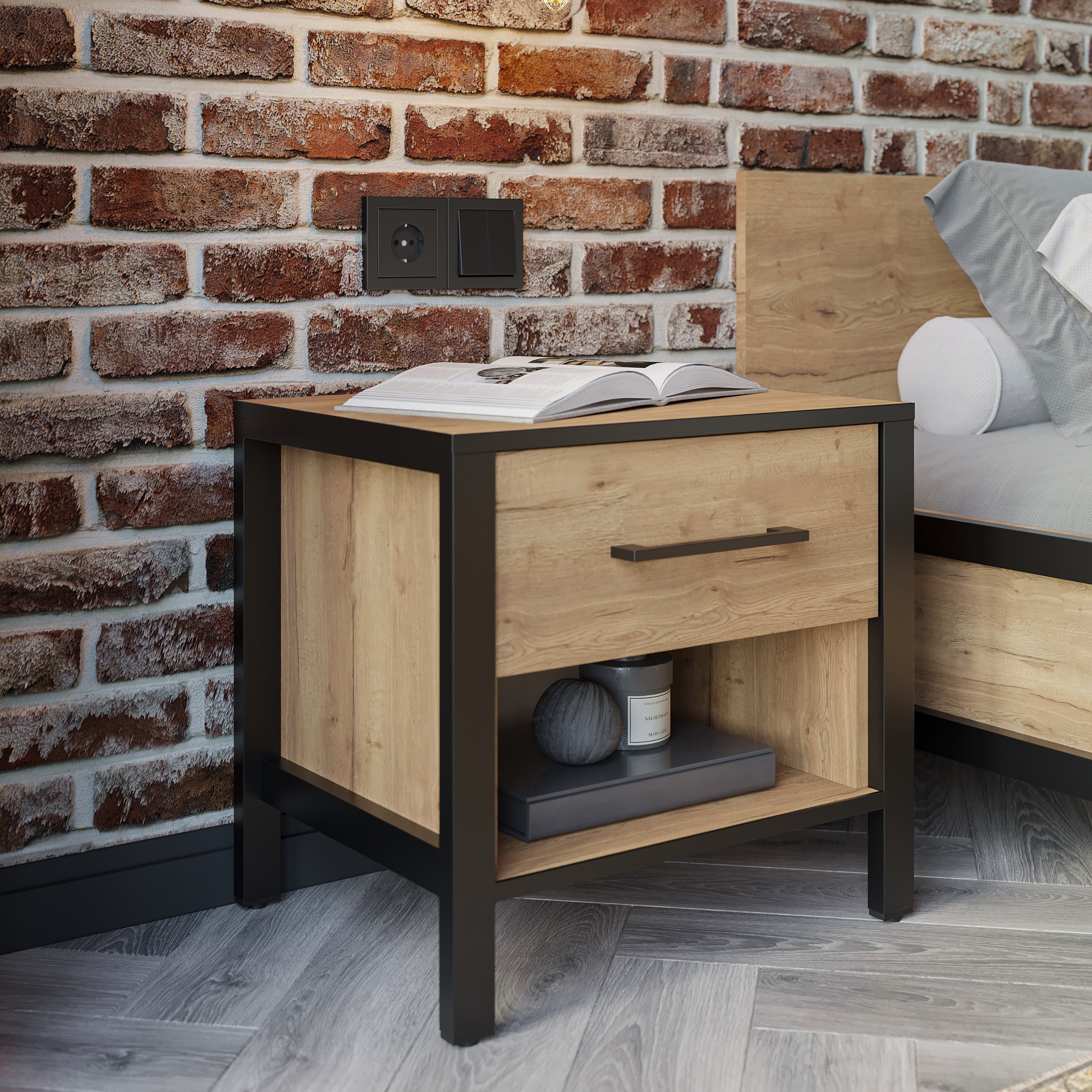 Прикроватная тумба DIWO Элиста дуб крафт золотой, черный