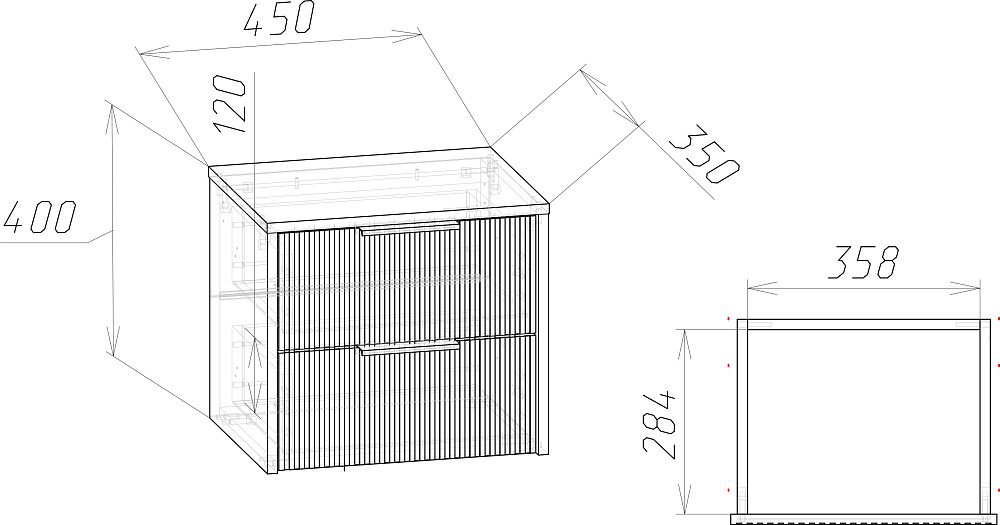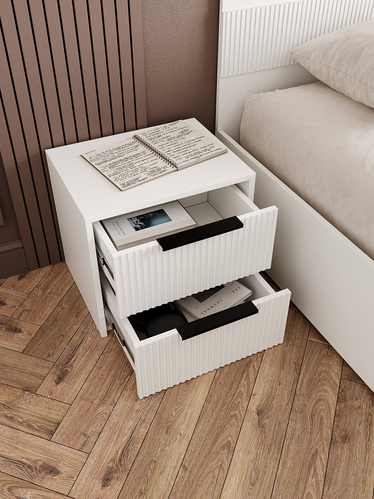 Прикроватная тумба DIWO Краснодар 45x40x35 см, 2 ящика белая, ручка черная