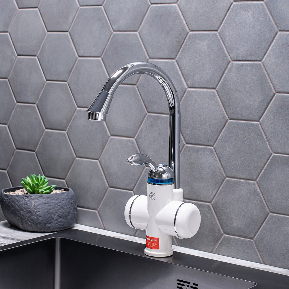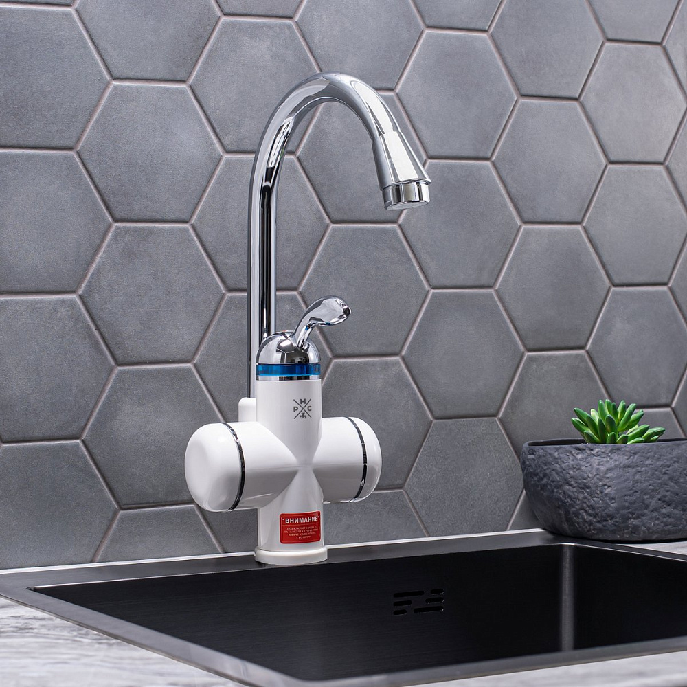 Проточный водонагреватель РМС ЭЛ РМС-ЭЛ01 электрический, на раковину, вертикальный, белый