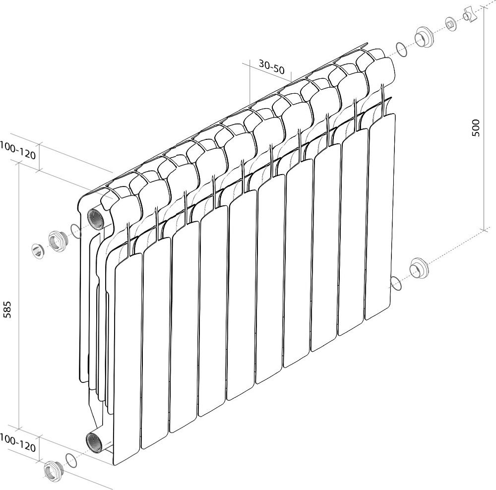 Отзывы о Радиатор алюминиевый секционный Royal Thermo Indigo 500 2.0 10 секций, боковое проходное подключение, белый