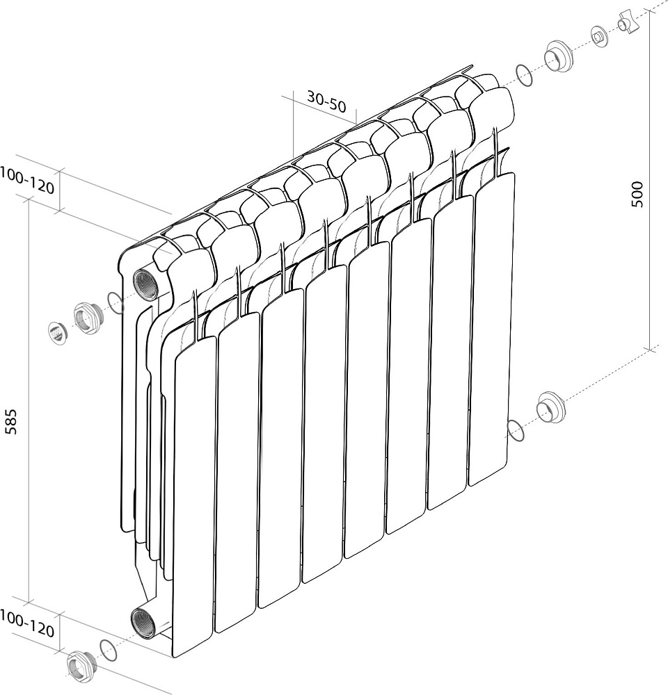 Отзывы о Радиатор алюминиевый секционный Royal Thermo Indigo 500 2.0 8 секций, боковое проходное подключение, белый