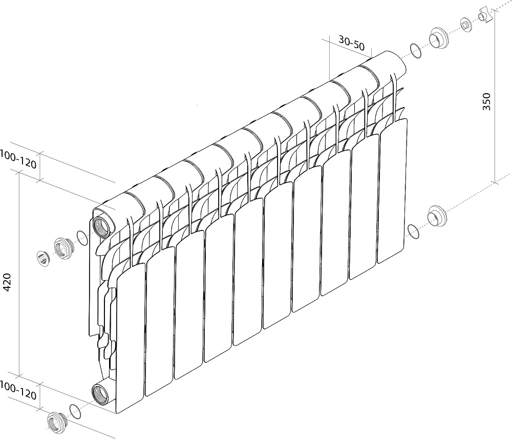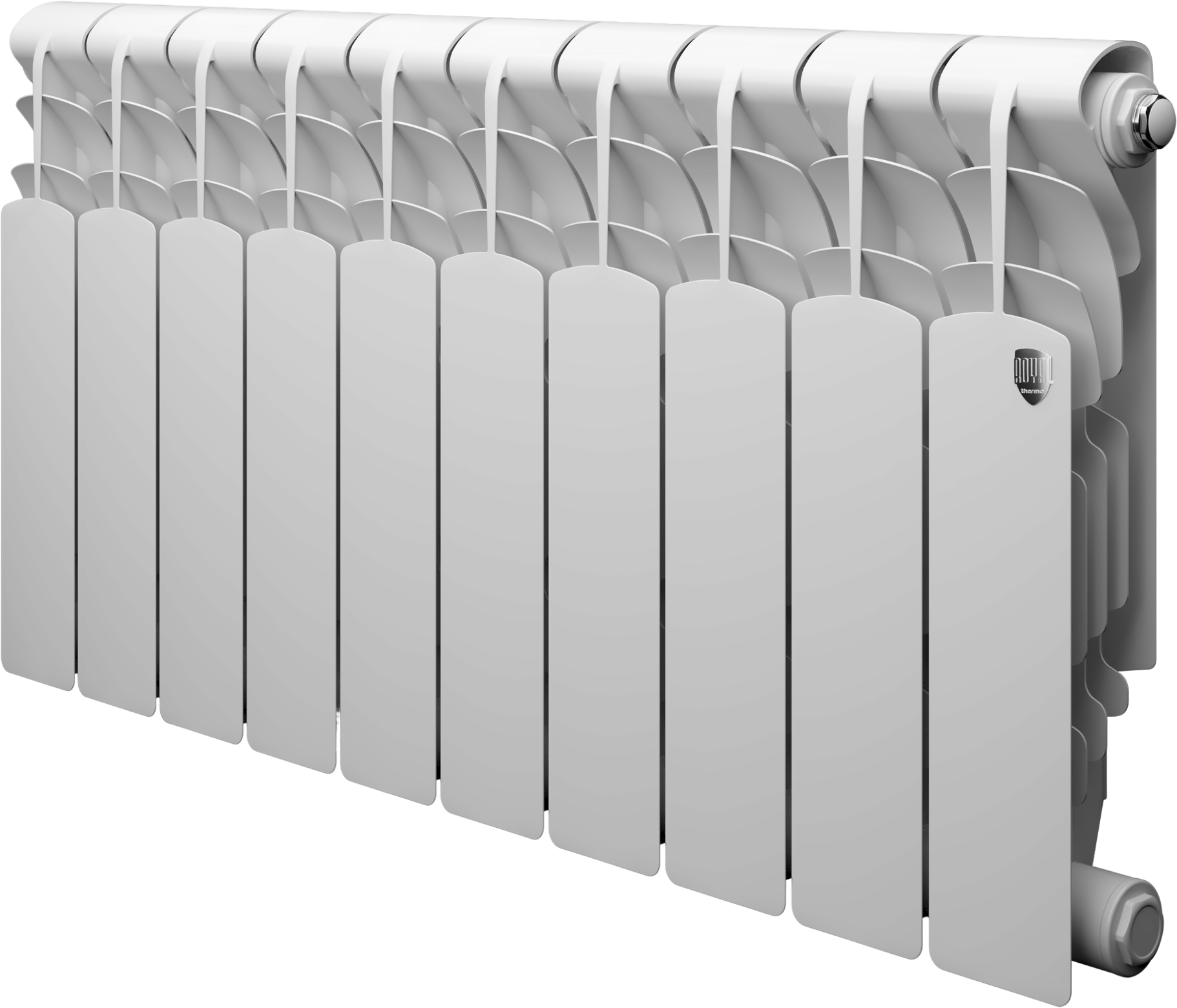 Радиатор алюминиевый секционный Royal Thermo Revolution 350 10 секций, боковое проходное подключение, белый