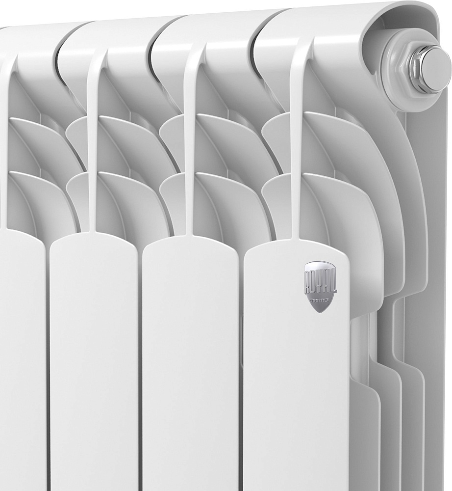 Радиатор алюминиевый секционный Royal Thermo Revolution 500 2.0 4 секции, боковое проходное подключение, белый