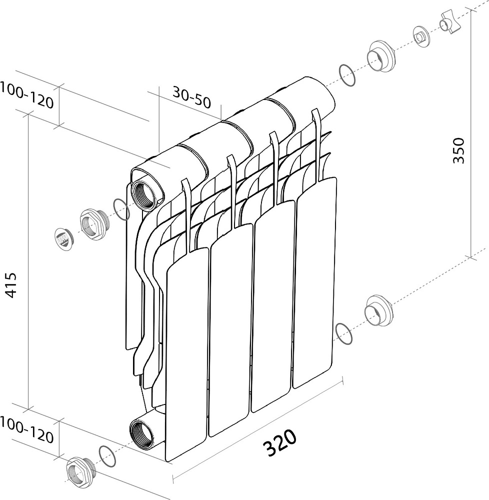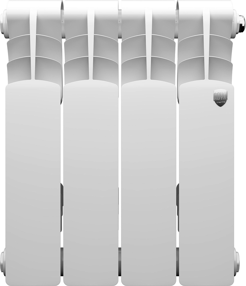 Радиатор биметаллический секционный Royal Thermo Revolution Bimetall 350 4 секции, боковое проходное подключение, белый