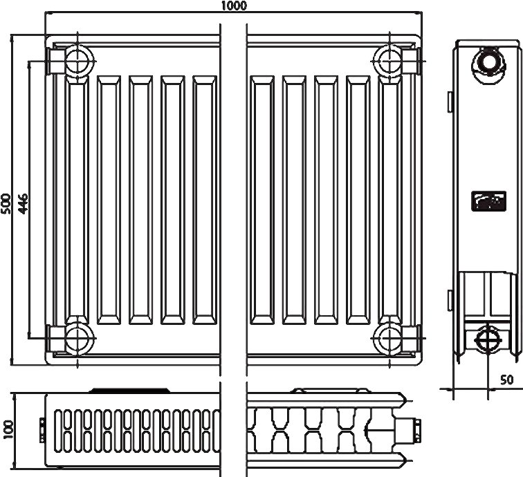 Радиатор стальной панельный Kermi FKO FK0220501001N2Y 1000x500 мм, боковое проходное подключение, белый RAL 9016
