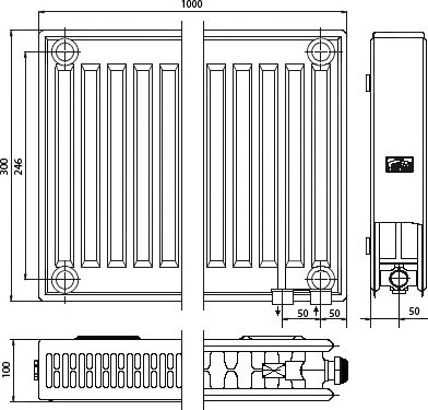 Радиатор стальной панельный Kermi FTV 220301001R2Y 1000x300 мм, нижнее правое подключение, белый RAL 9016