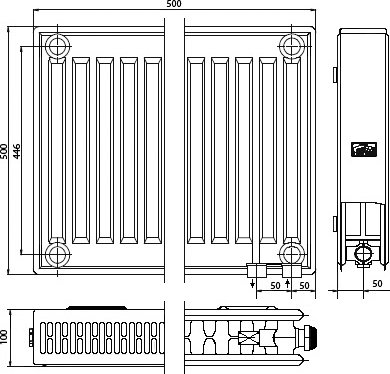 Радиатор стальной панельный Kermi FTV 220500501R2Y 500x500 мм, нижнее правое подключение, белый RAL 9016