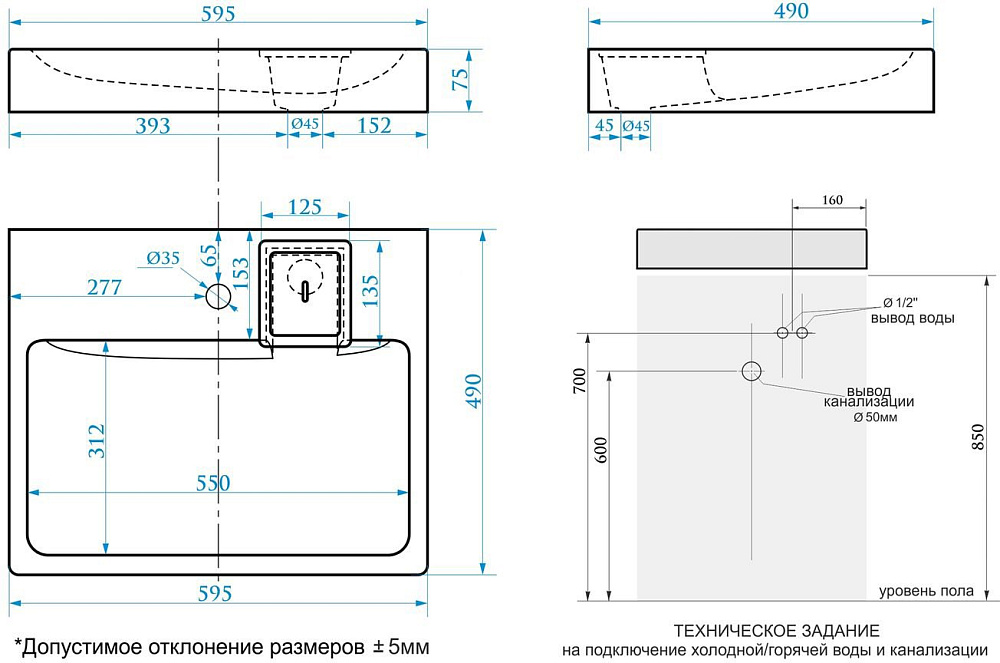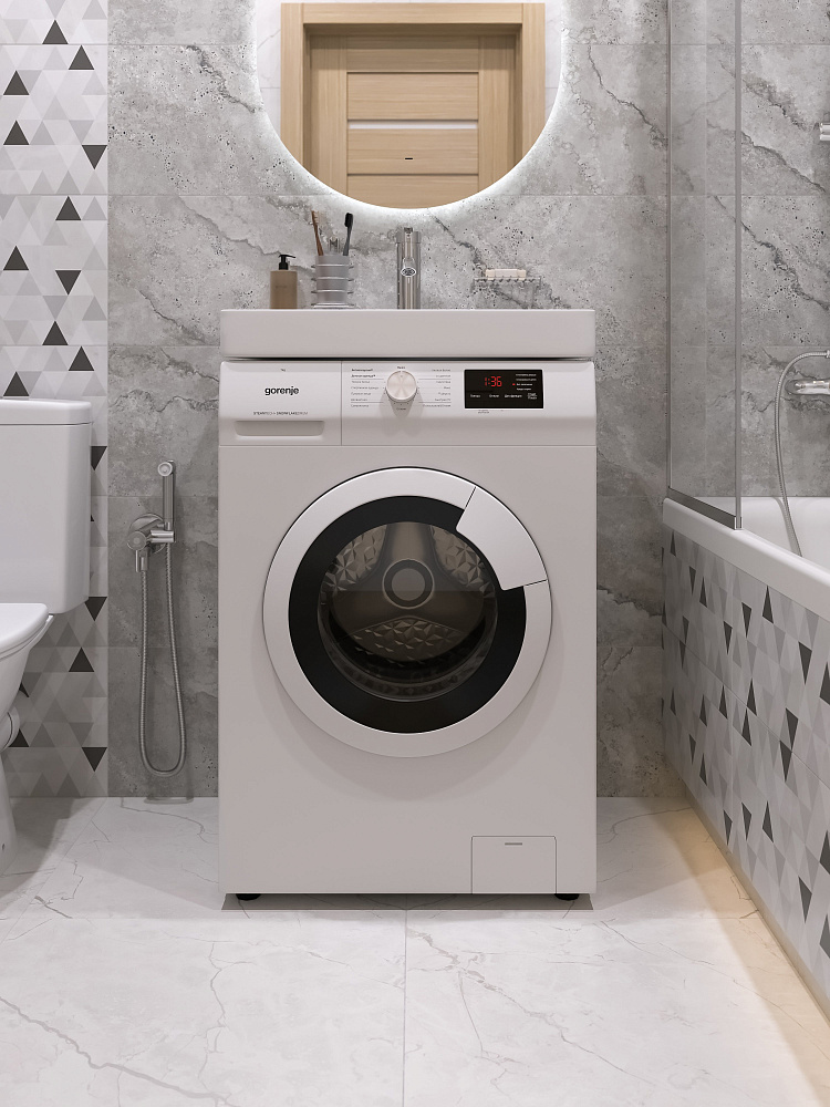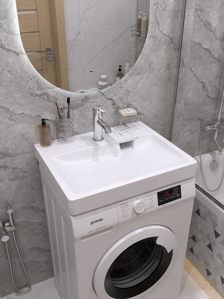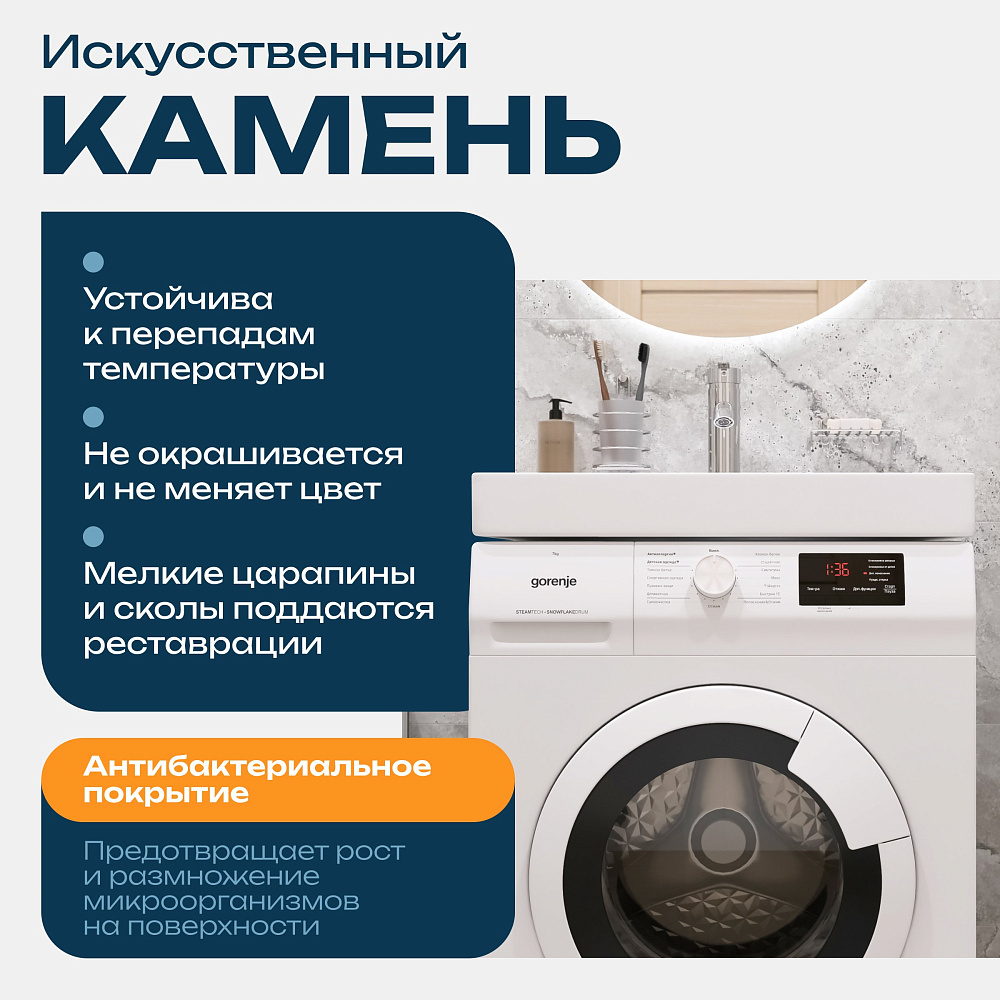Раковина над стиральной машиной DIWO Коломна RnDKS-50 глянцевая белая, прямоугольная, искусственный камень, с комплектом кронштейнов