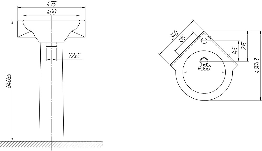 Раковина подвесная DIWO Псков 0100 48 белая, круглая, угловая, фаянс