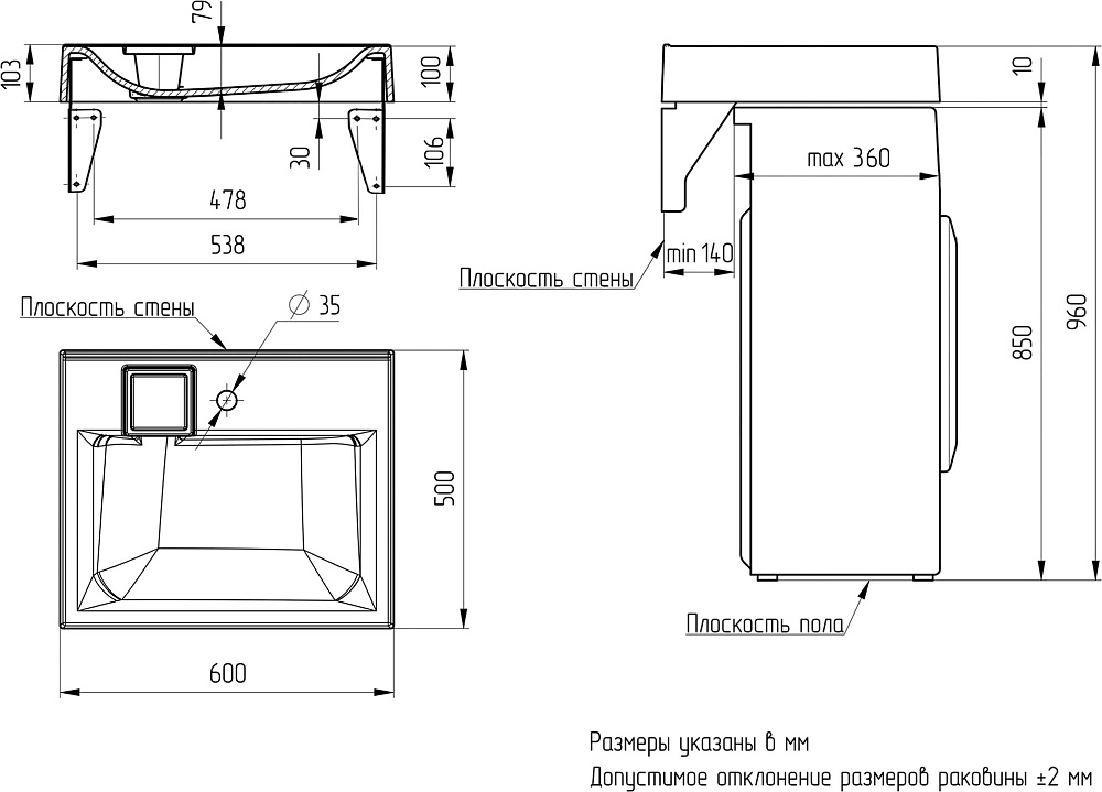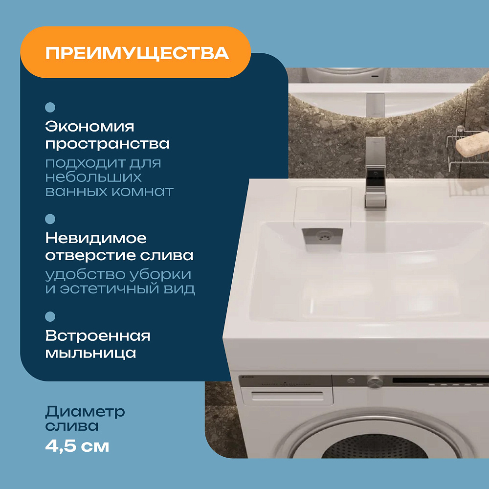 Раковина над стиральной машиной DIWO Ростов RRnS500 50 глянцевая белая, прямоугольная, с комплектом кронштейнов