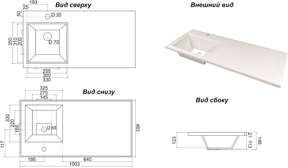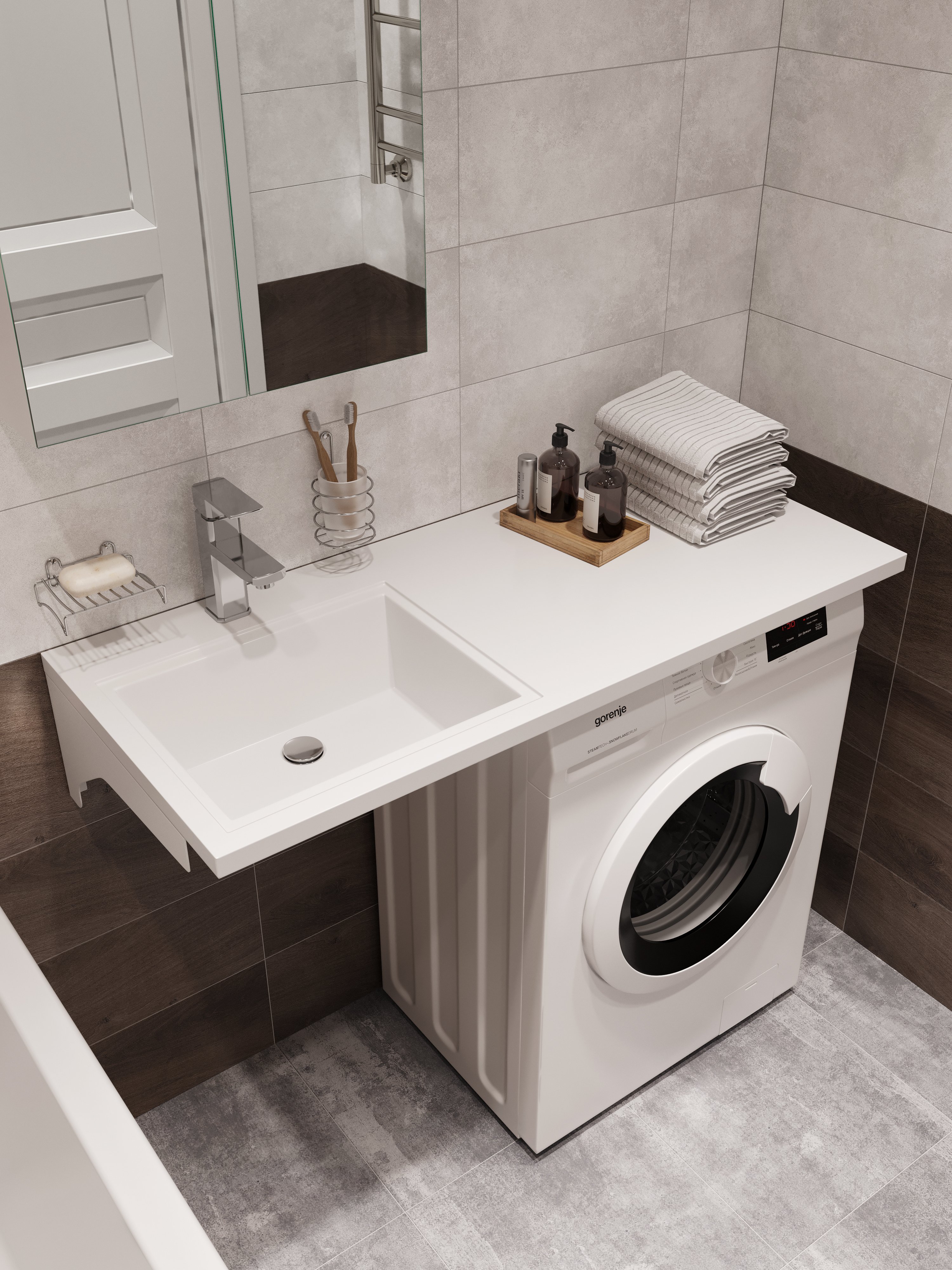 Раковина над стиральной машиной DIWO Тольятти 100 L глянцевая белая, прямоугольная, искусственный камень, со столешницей справа, с комплектом кронштейнов