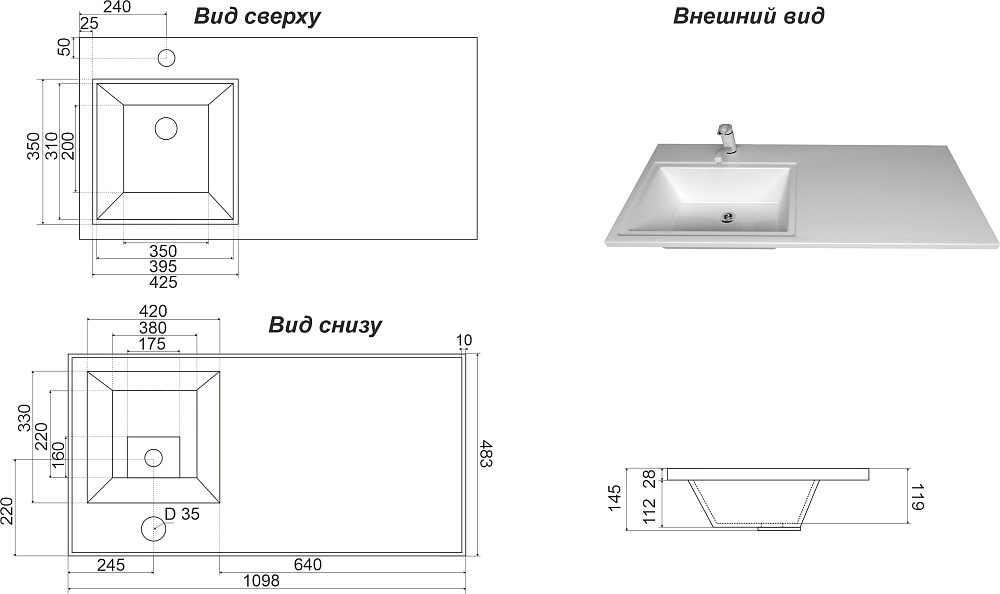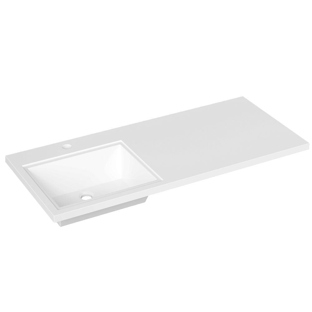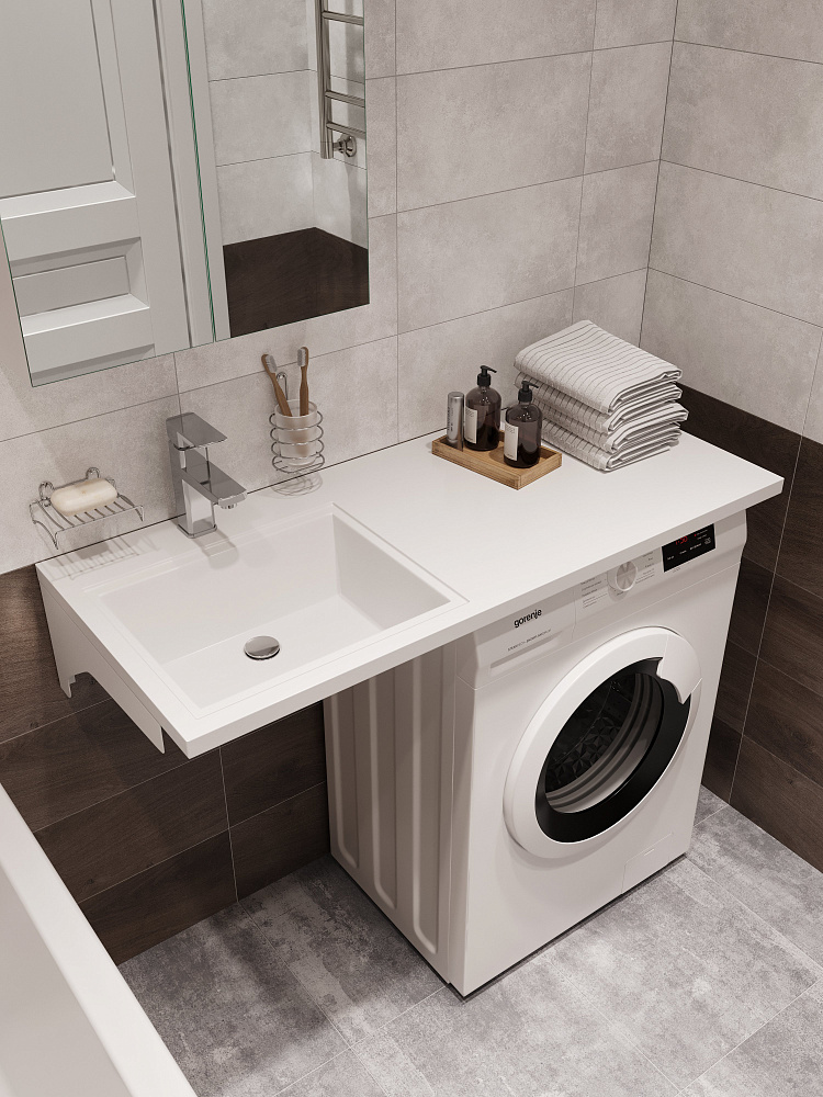 Раковина над стиральной машиной DIWO Тольятти 110 L глянцевая белая, прямоугольная, искусственный камень, со столешницей справа, с комплектом кронштейнов