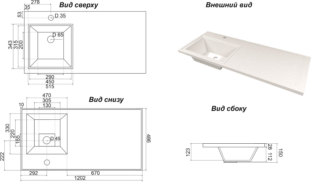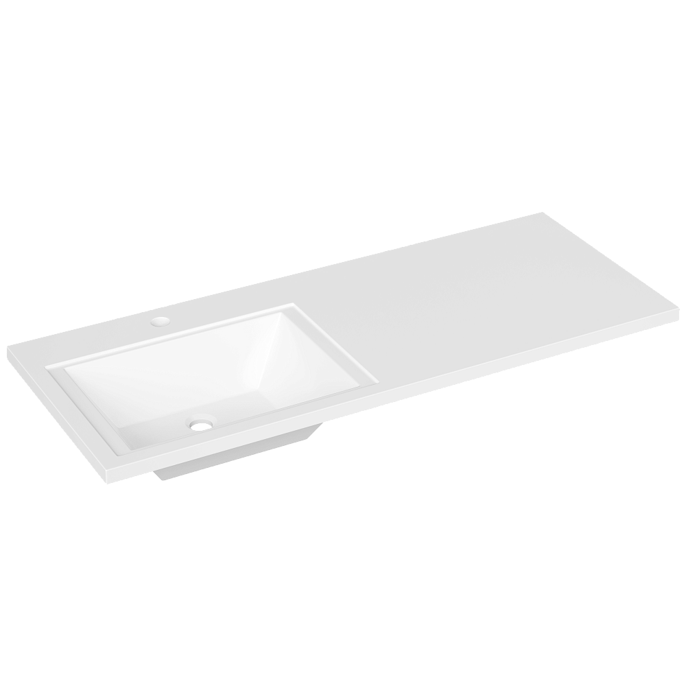 Раковина над стиральной машиной DIWO Тольятти 120 L глянцевая белая, прямоугольная, искусственный камень, со столешницей справа, с комплектом кронштейнов