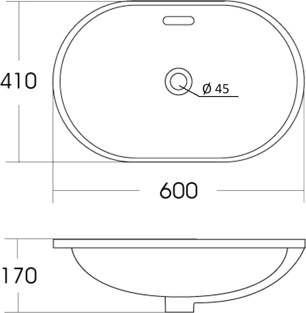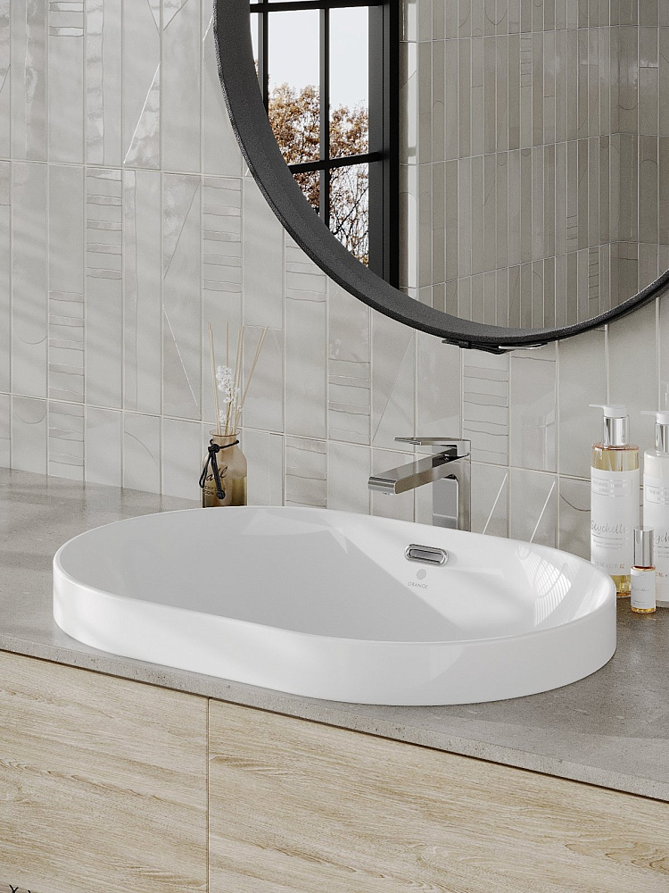 Раковина встраиваемая сверху Orange B05-600W 60 глянцевая белая, овальная