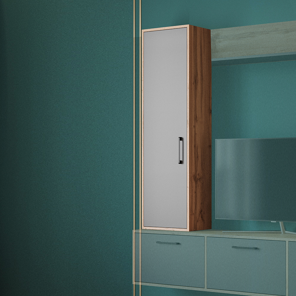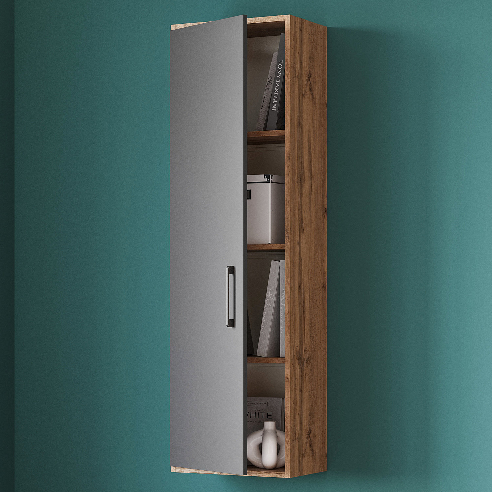 Шкаф навесной DIWO Кострома 40x135х25 см, навесной, антрацит, дуб вотан, ручка черная