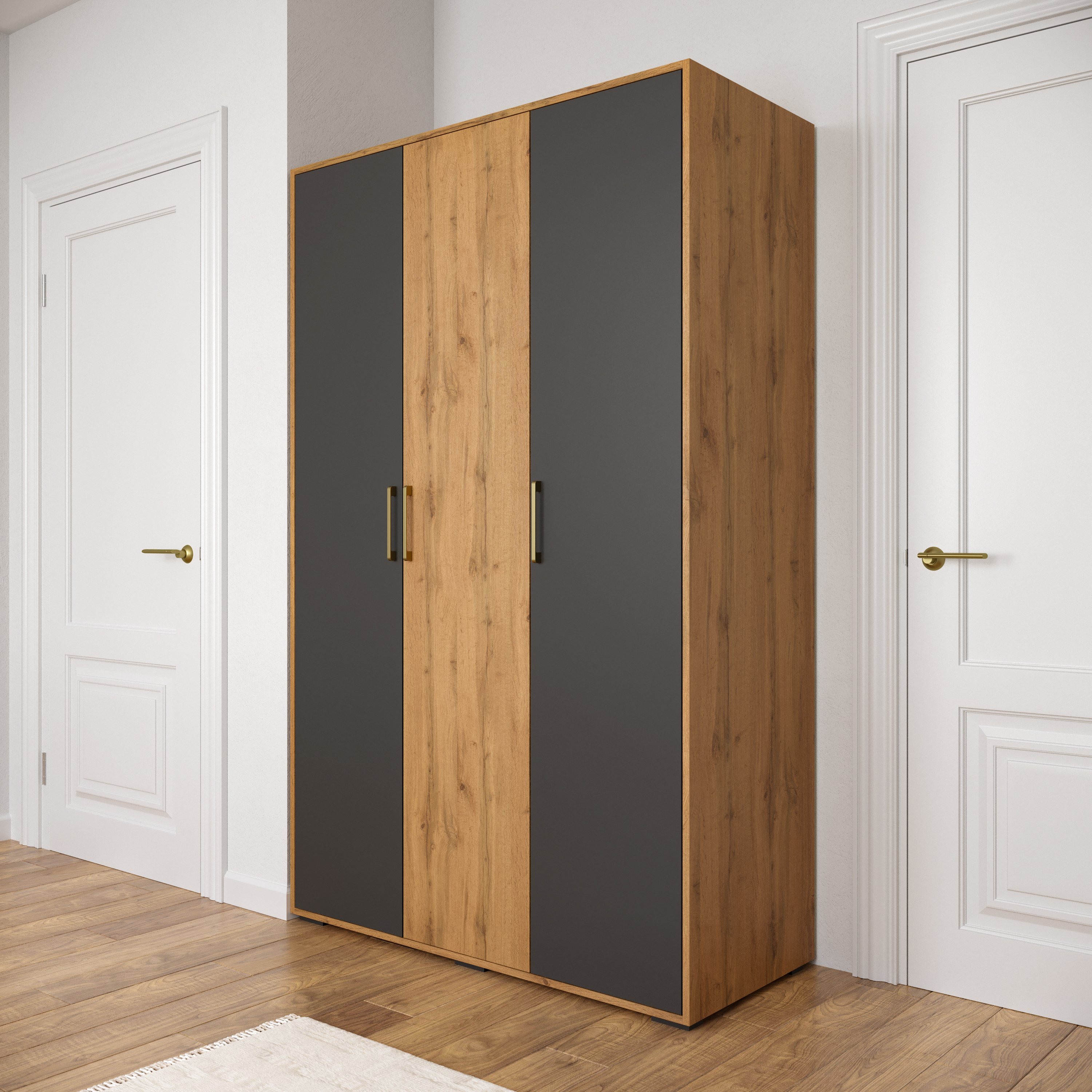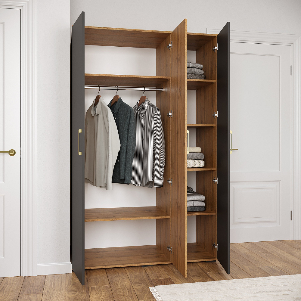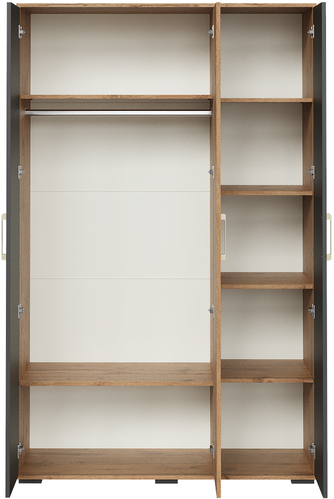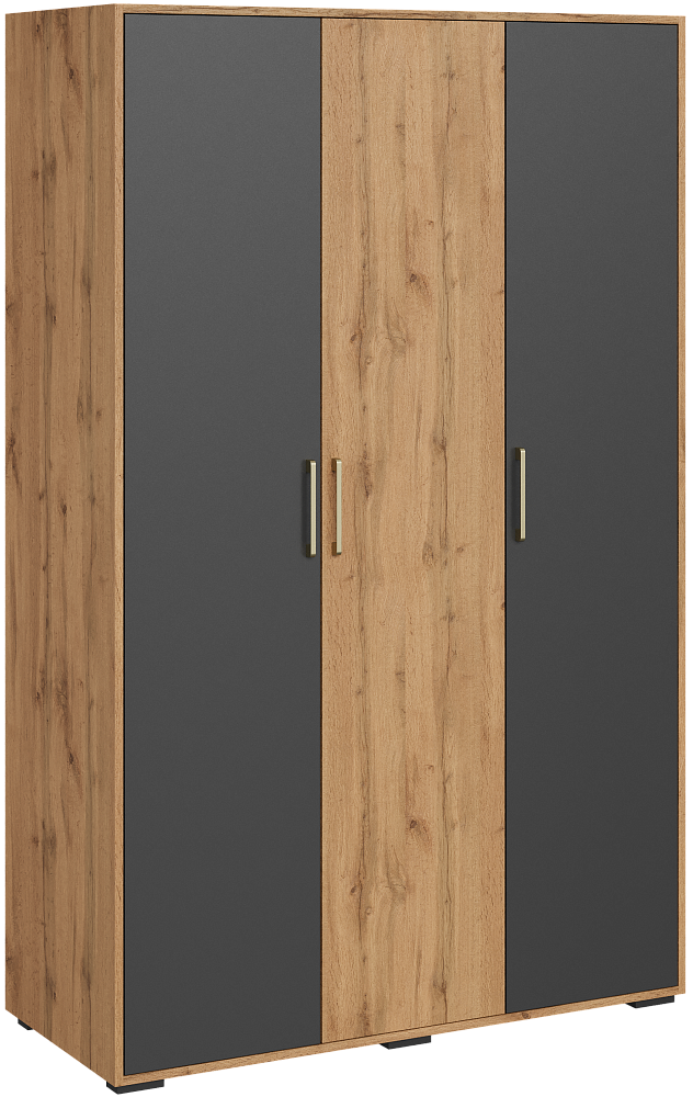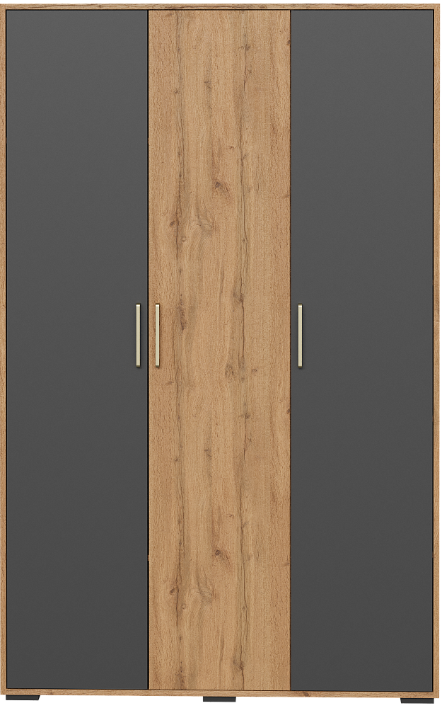 Шкаф для одежды DIWO Кострома 120x191х52 см, трехдверный, антрацит, дуб вотан, ручка золото