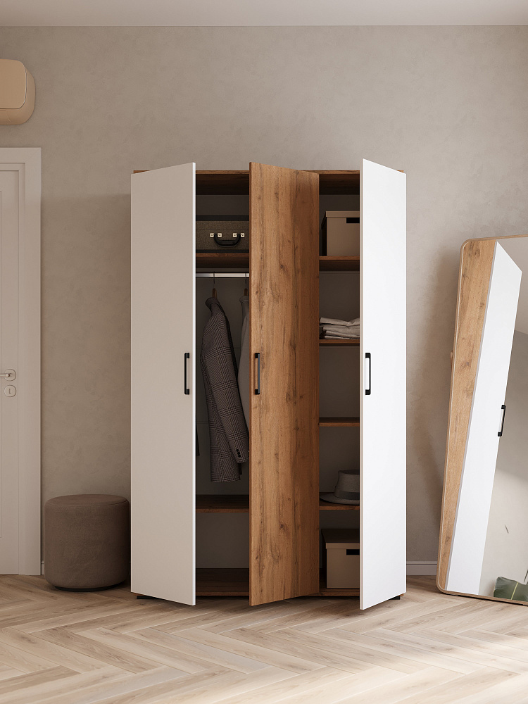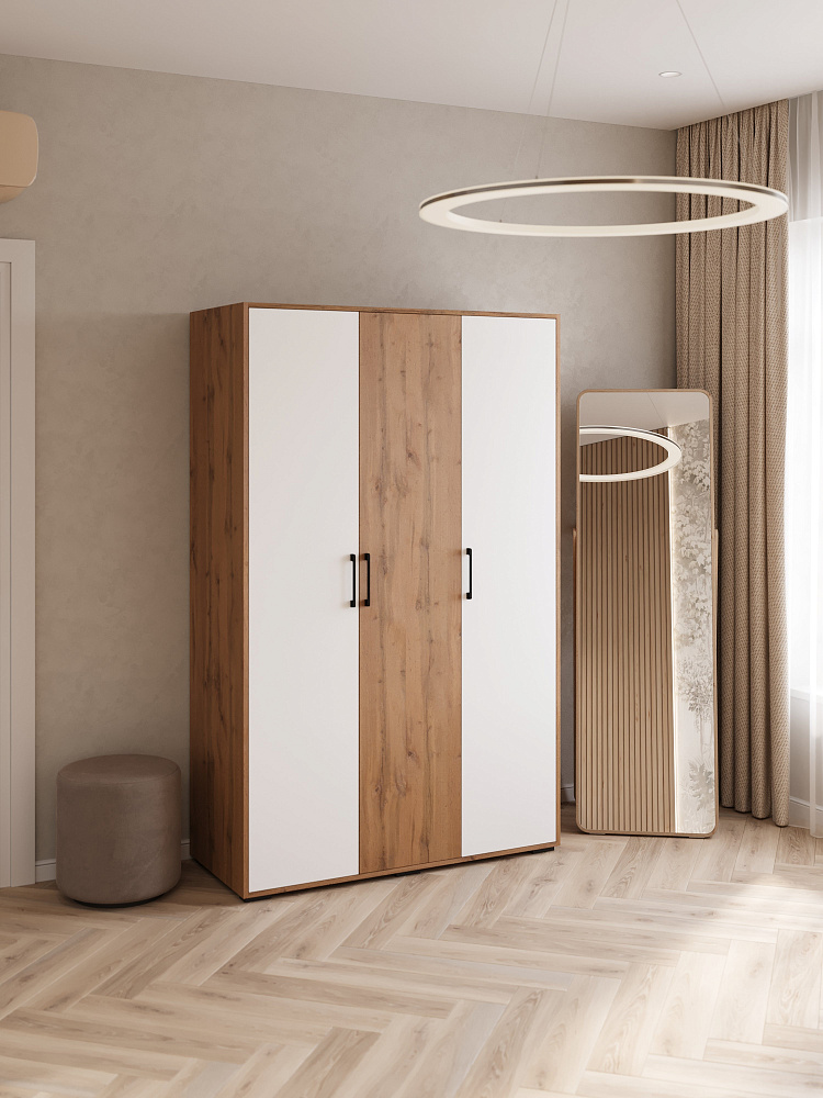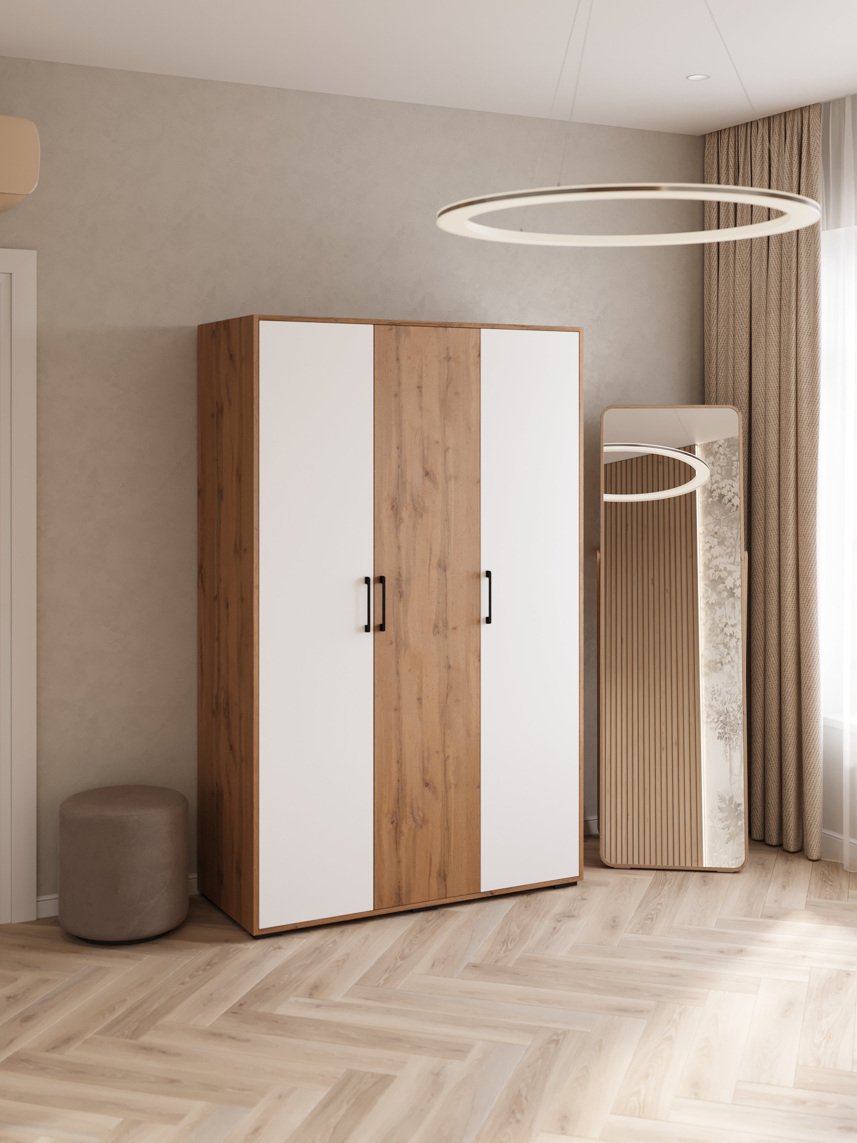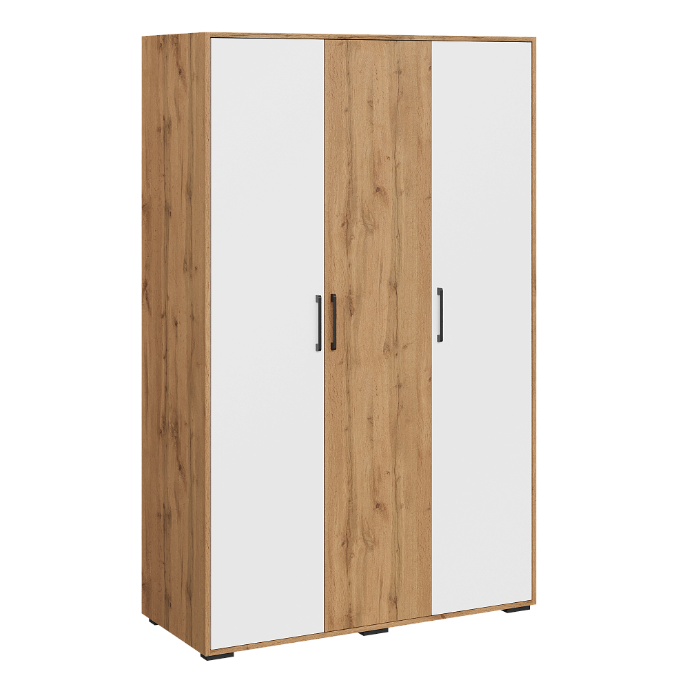 Шкаф для одежды DIWO Кострома 120x191х52 см, трехдверный, белый, дуб вотан, ручка черная