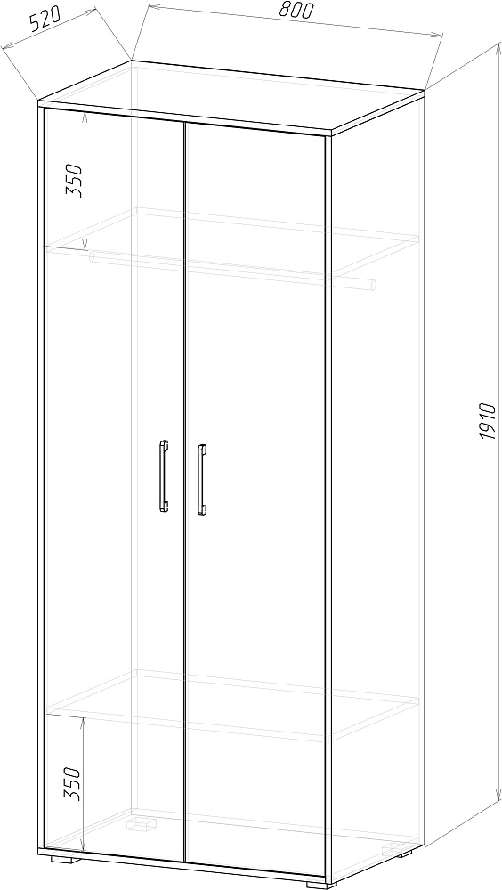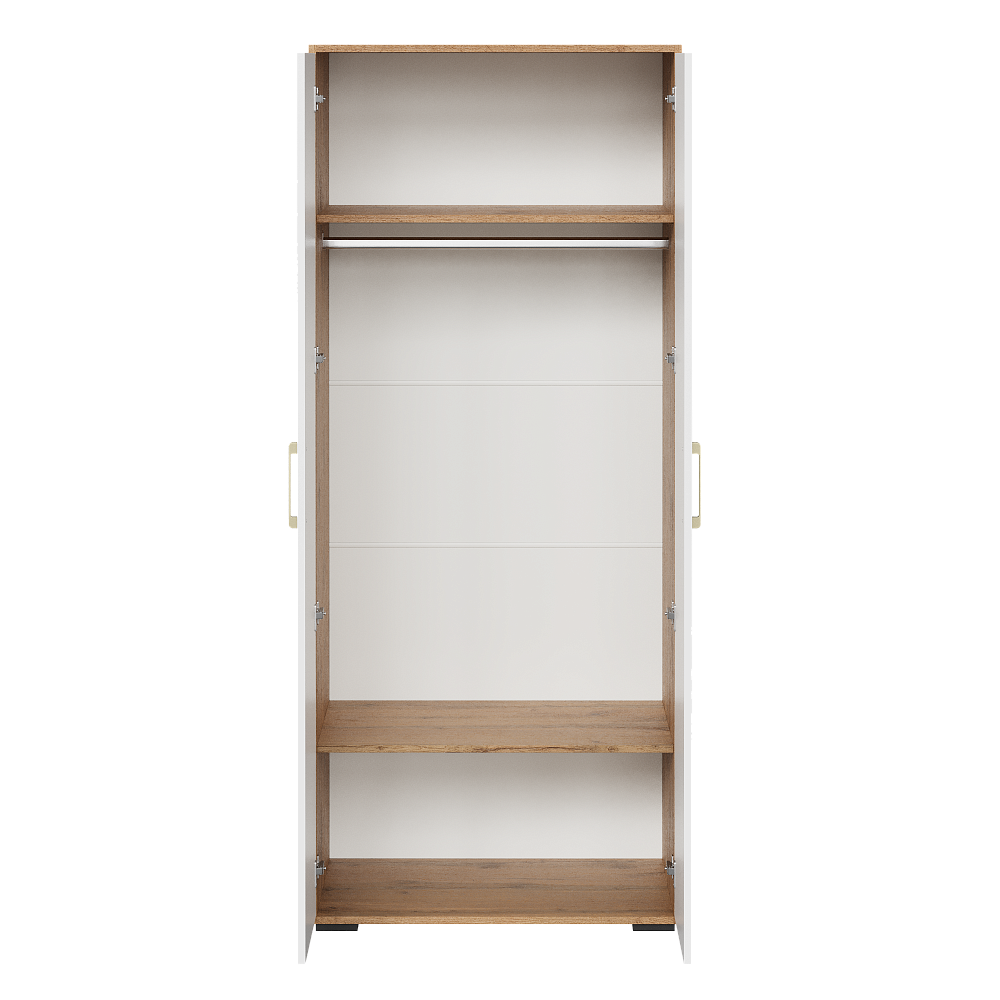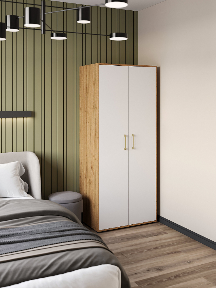 Шкаф для одежды DIWO Кострома 80x191х52 см, двухдверный, белый, дуб вотан, ручка золото