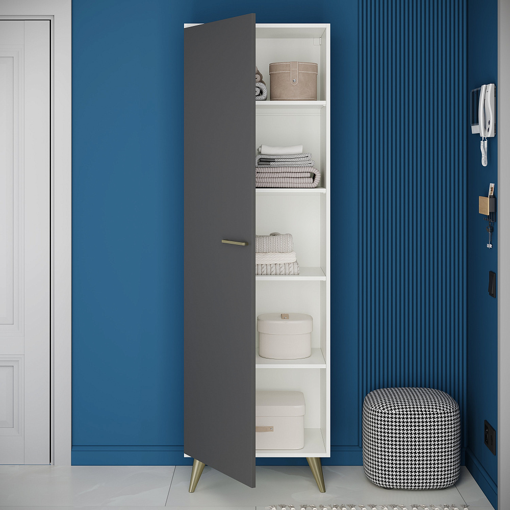 Шкаф для одежды DIWO Кострома с полками 60x193х42 см, белый, антрацит, ручка золото, ножка золото