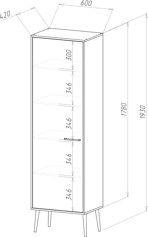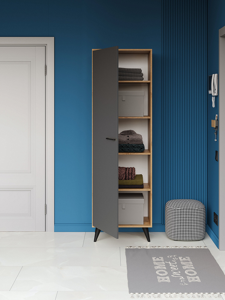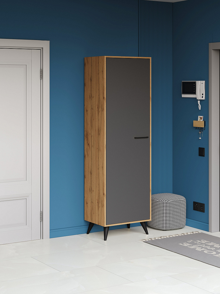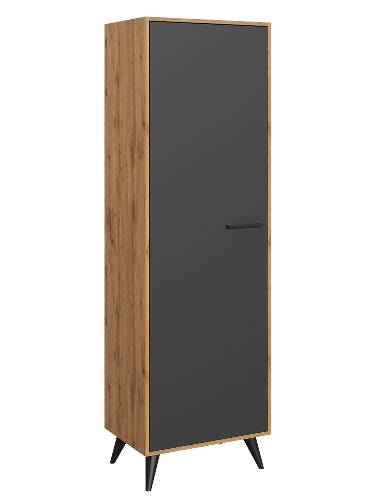 Шкаф для одежды DIWO Кострома с полками 60x193х42 см, дуб вотан, антрацит, ручка черная, ножка черная