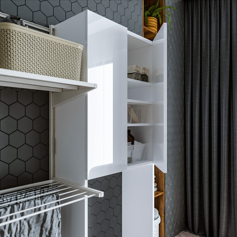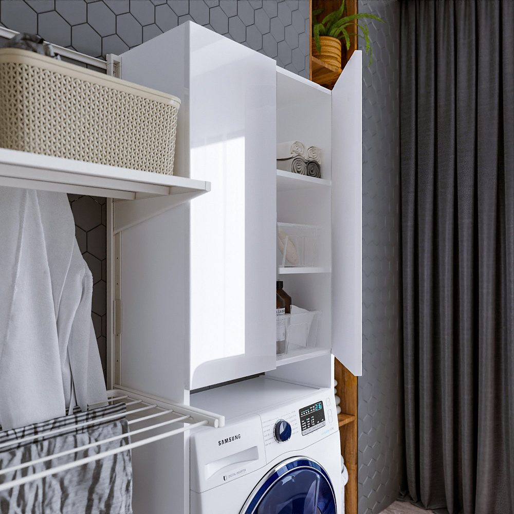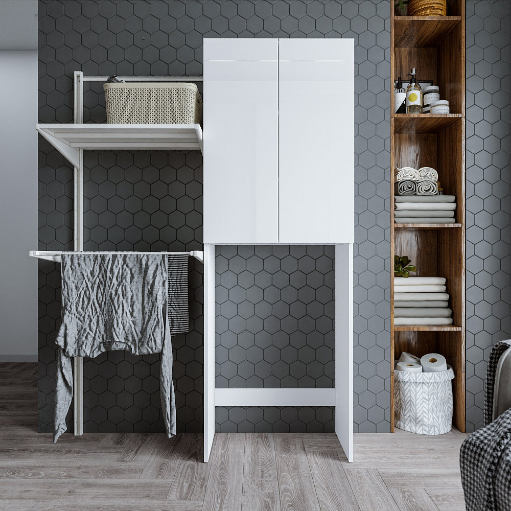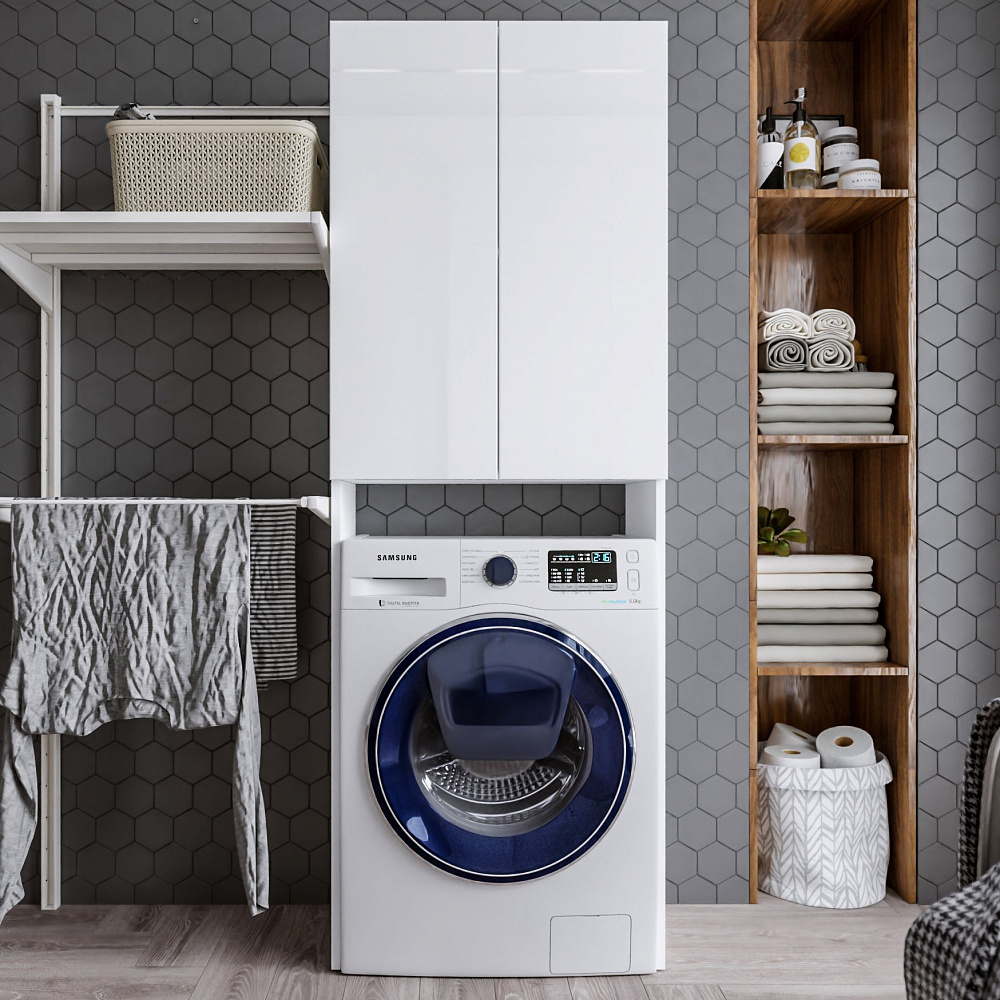 Шкаф над стиральной машиной Бриклаер Хелена белый глянец