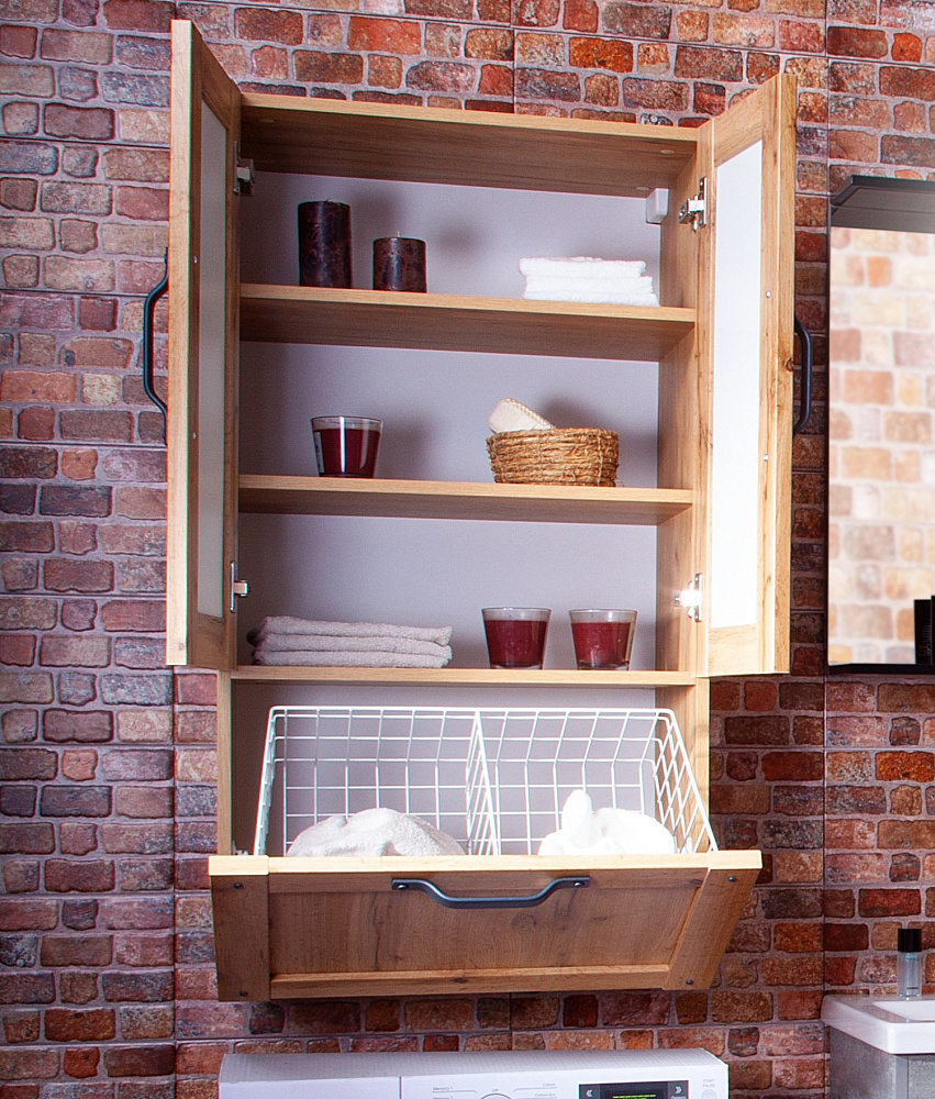 Отзывы о Шкаф над стиральной машиной Бриклаер Лофт 60 метрополитен грей, с бельевой корзиной