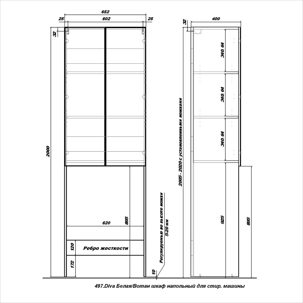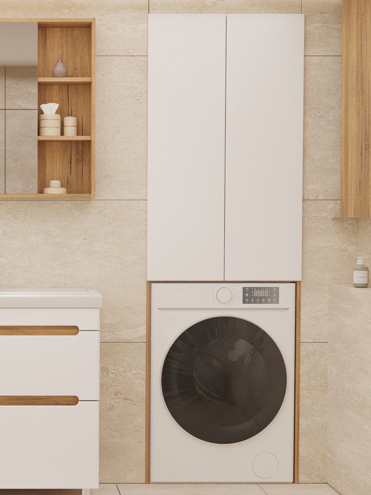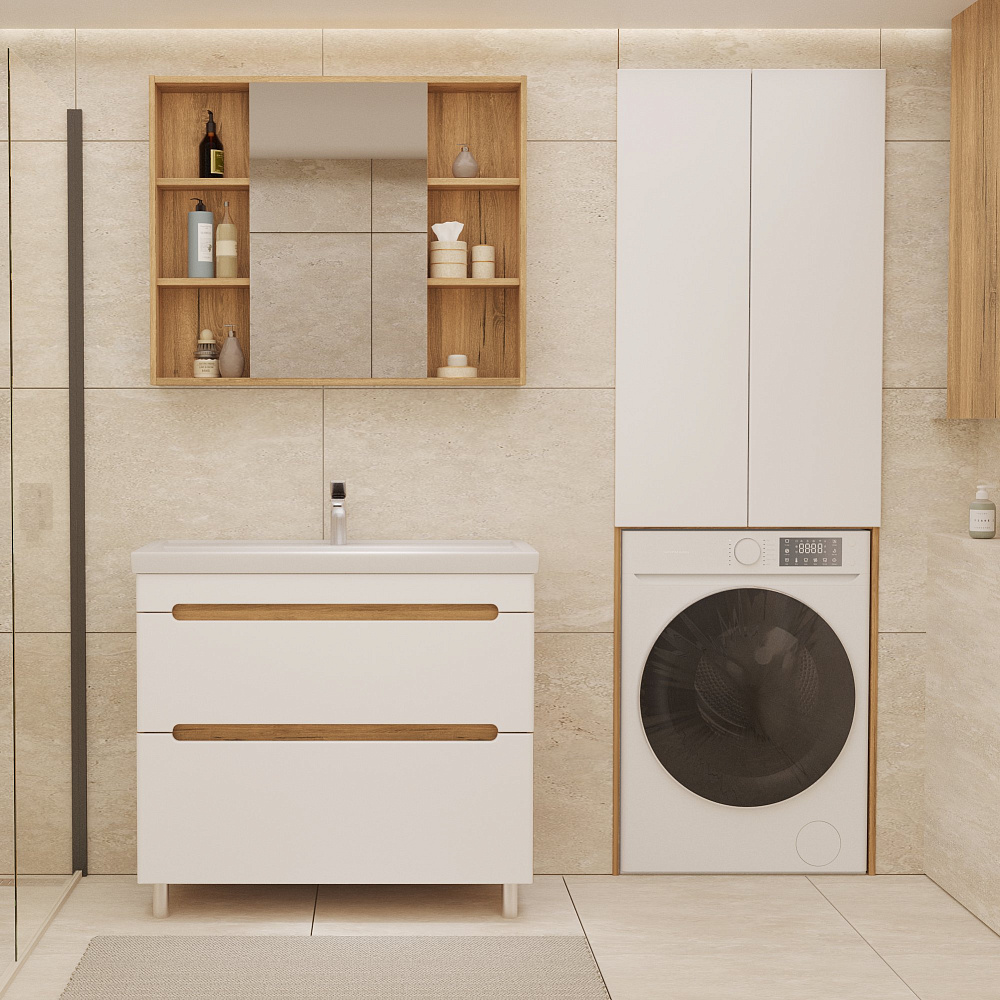 Шкаф над стиральной машиной SanStar Diva 65 матовый белый, дуб вотан
