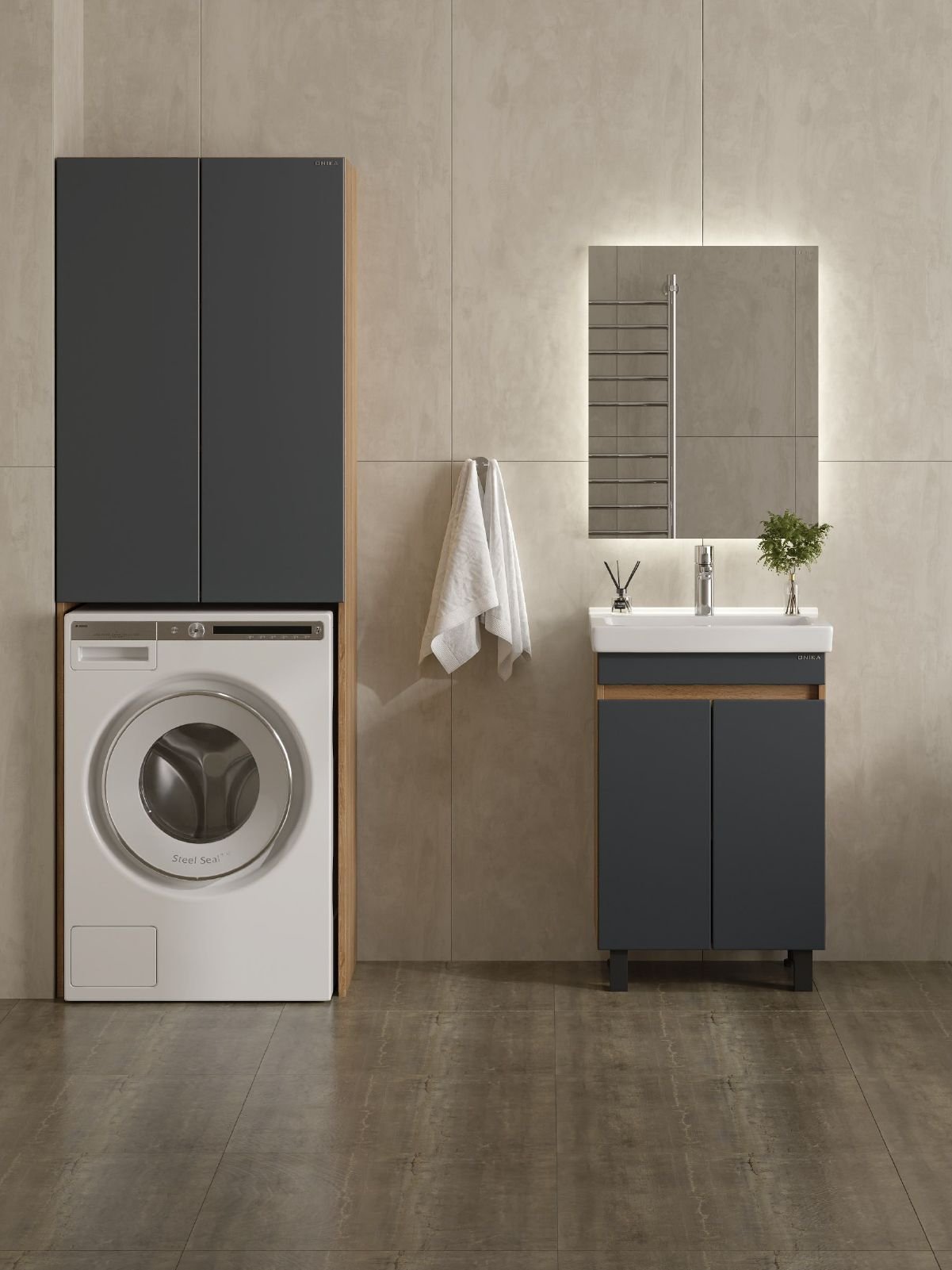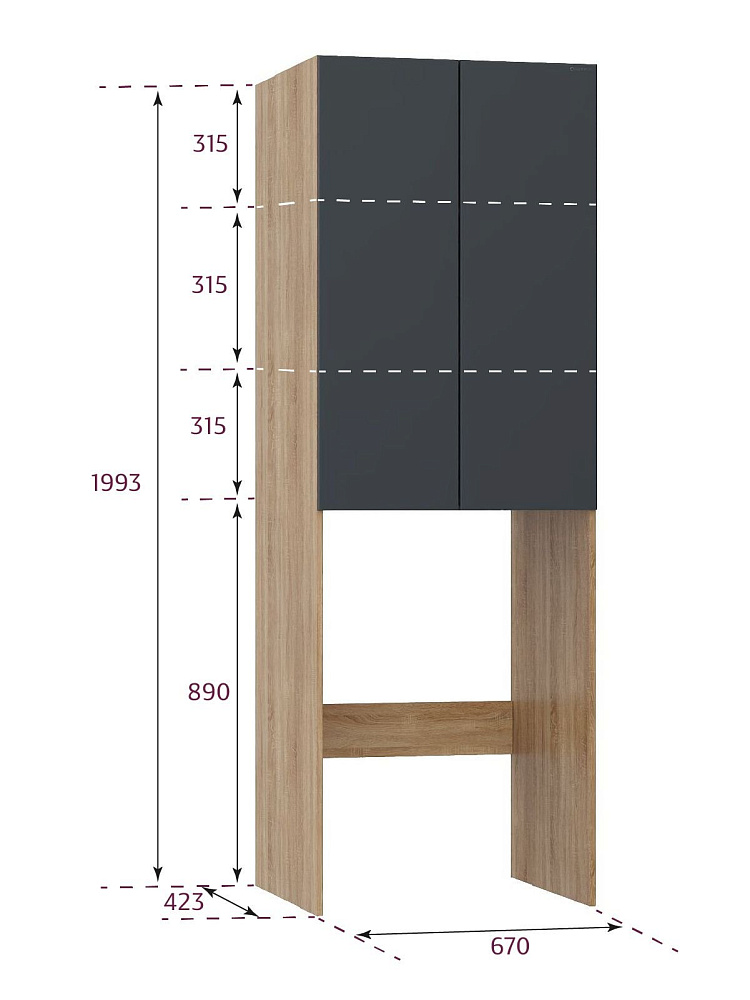 Шкаф Onika Милтон 67 напольный, серый/дуб сонома, для стиральной машины, разборный