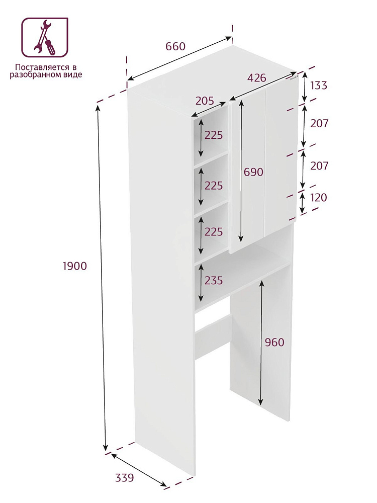 Шкаф Onika Милтон Нова 67 напольный, белый, для стиральной машины, разборный