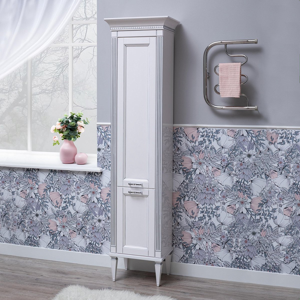 Шкаф-пенал для ванной Aquanet Селена 40 L белый, серебро