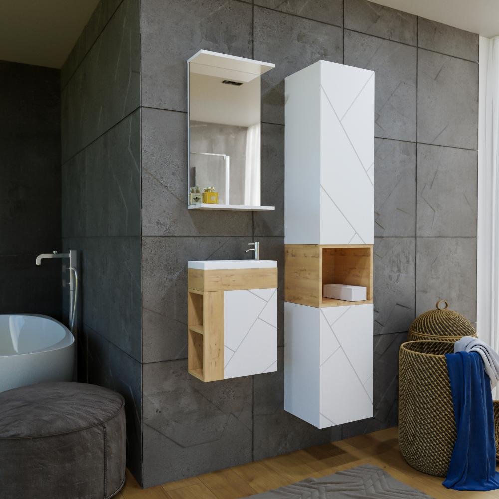 Шкаф-пенал для ванной Бриклаер Кристалл белый матовый, дуб бунратти